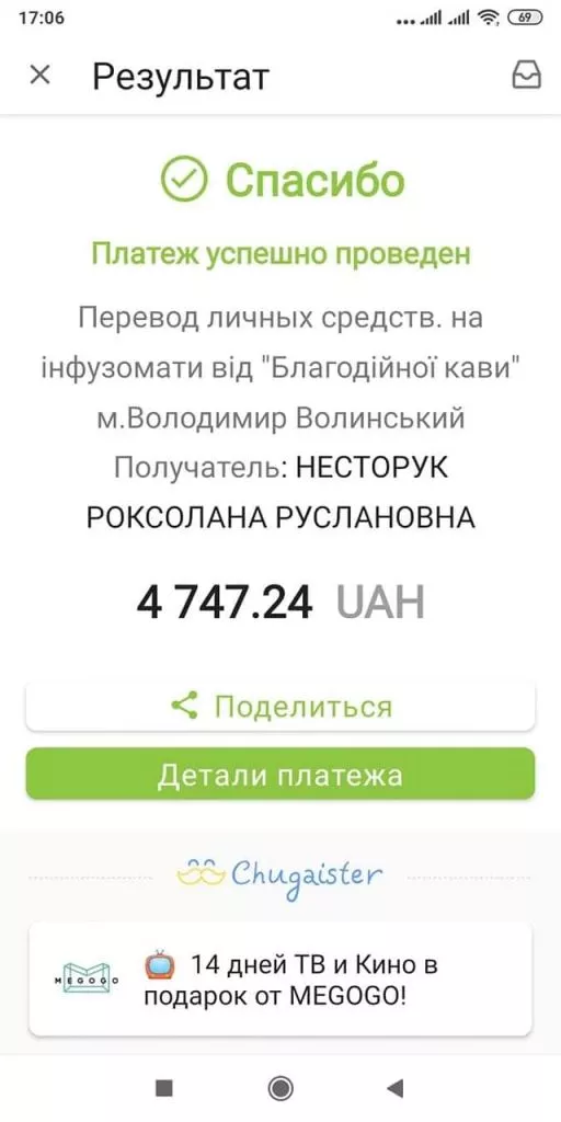 Організаторка проєкту «Благодійна кава», що проходив одночасно у Володимирі та Луцьку, Ольга Жигунова прозвітували, на що витратили майже 35 тисяч гривень, зібраних під час акції.