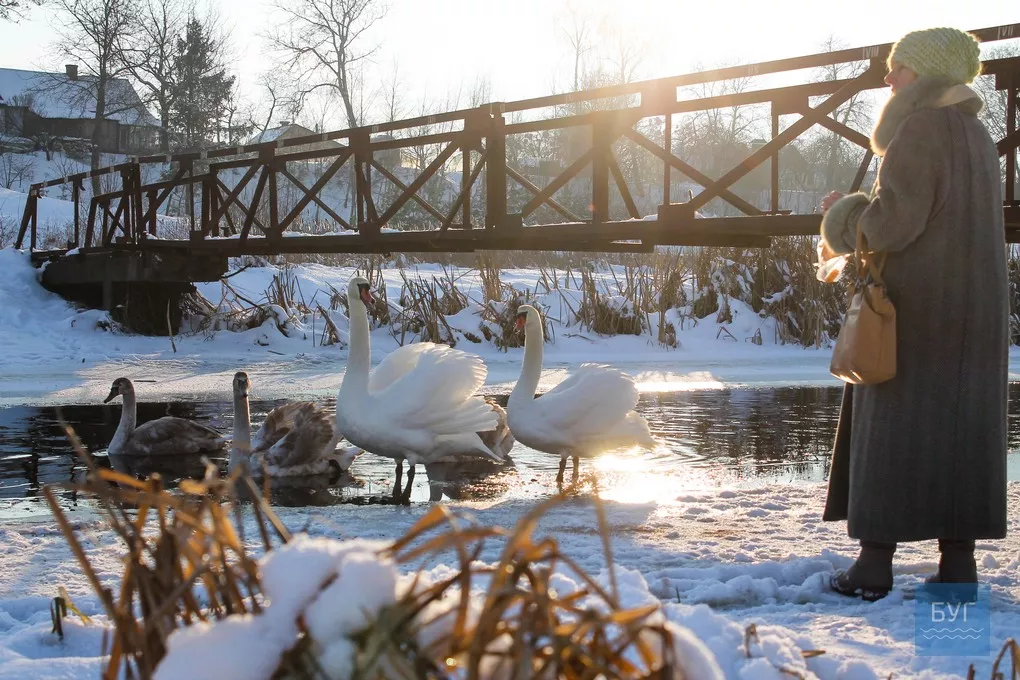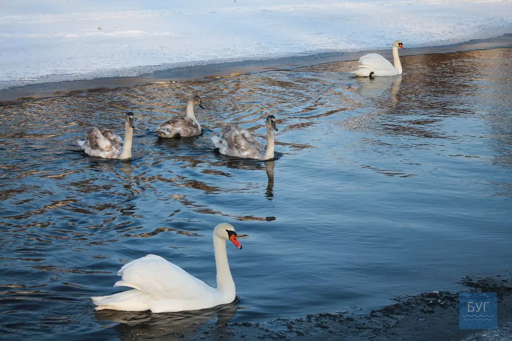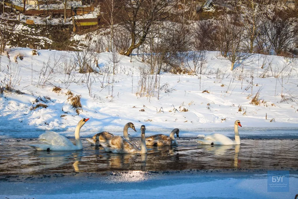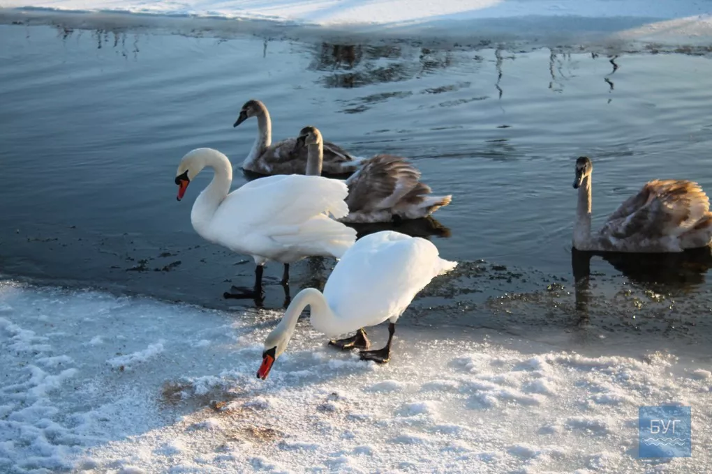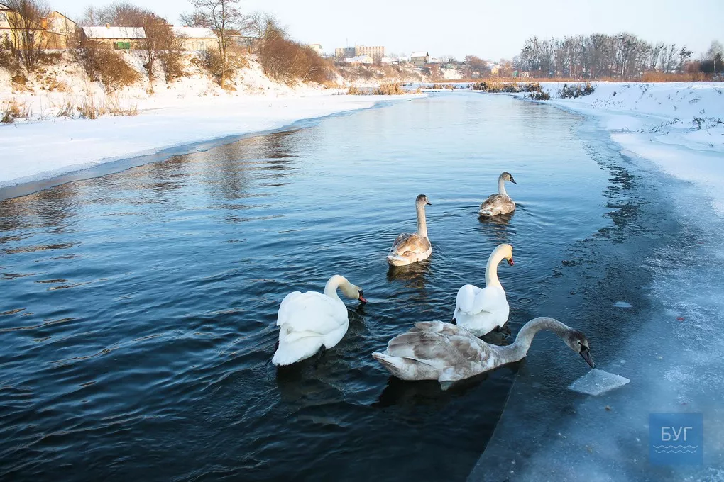 Наприкінці січня на річці Лузі у Володимирі-Волинському оселилася зграя лебедів. Величні птахи вільно плавають окремими сім’ями – по периметру водойми. Їх підгодовують місцеві.