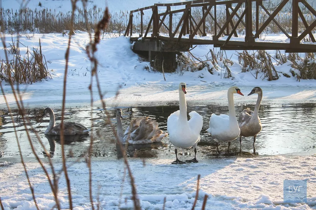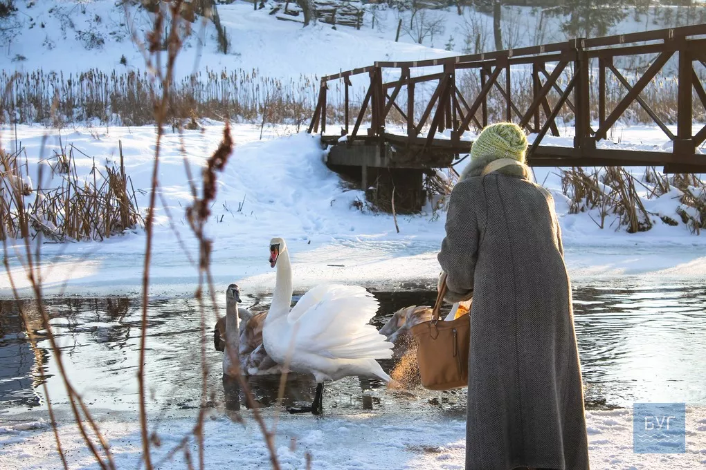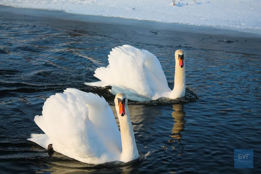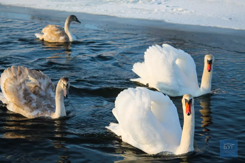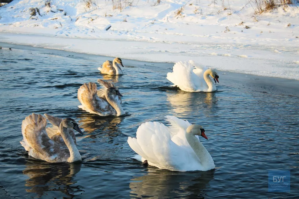 Наприкінці січня на річці Лузі у Володимирі-Волинському оселилася зграя лебедів. Величні птахи вільно плавають окремими сім’ями – по периметру водойми. Їх підгодовують місцеві.
