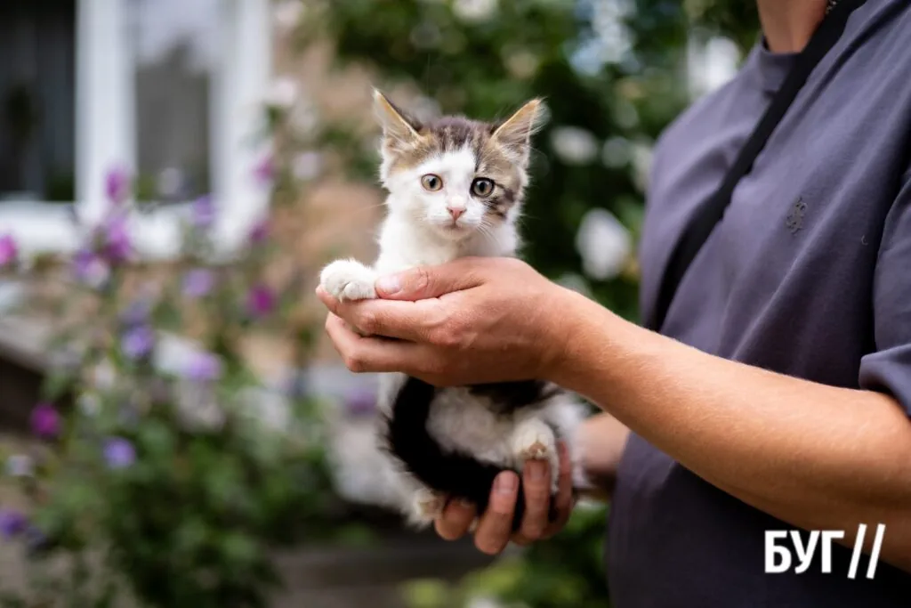 Цього малюка та його братика журналісти БУГу знайшли поза населеними пунктами у лісі, коли повертались зі зйомки в Столинських Смолярах. Зараз котик у тимчасовом прихистку – нагодований, ласкавий та дуже слухняний.