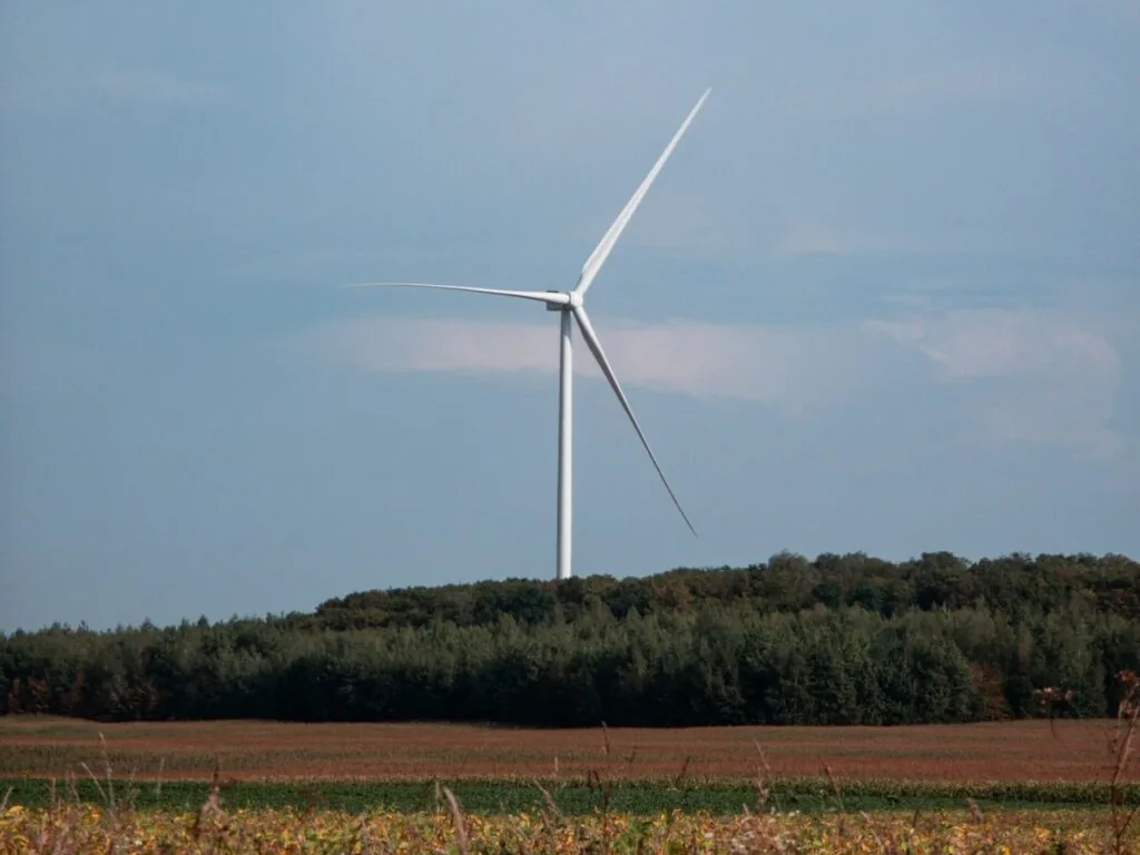 10-го вересня поблизу Володимира відкривається вид на сучасні вітряки, що вирізняються на тлі полів і лісу, поєднуючи технології та красу природи.