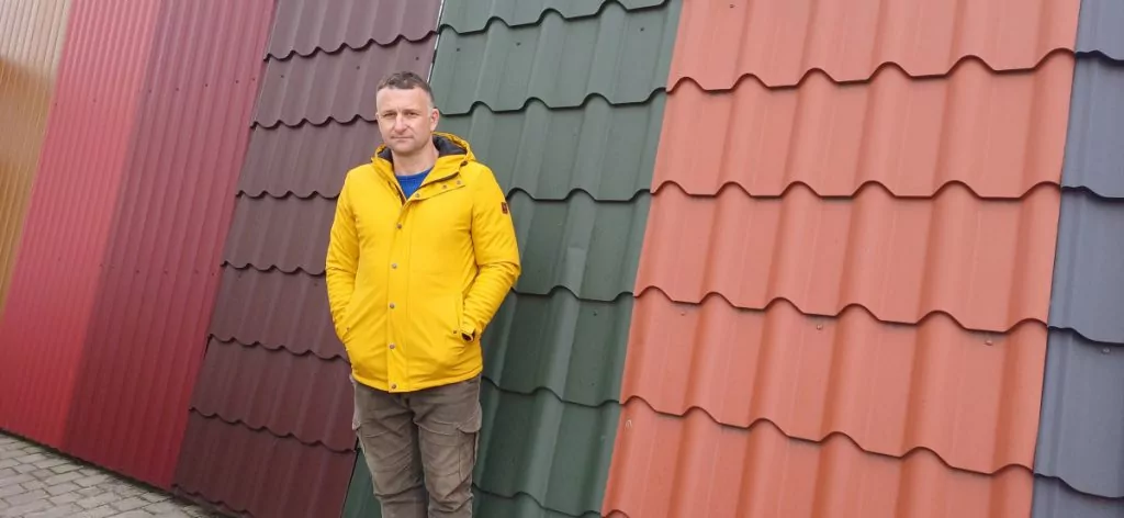 Михайло – підприємець з 18-річним досвідом. Деякий час із товаришем займався постачанням на замовлення матеріалів з Польщі в Україну, а понад десять років тому чоловік заснував у Володимирі власне підприємство «ЕкоБуд». Специфіку роботи не змінив, а дещо переформатував. Оскільки мав напрацьовану базу перевірених виробників якісних металочерепиці, металопрофілів, то вирішив розвиватися у цьому напрямку й не лише реалізовувати готові матеріали для дахів, а повністю забезпечувати замовників усім необхідним для покрівельних робіт, так би мовити, пропонувати покупцеві усе від захисної плівки до коньків і відливів. Тож придбав верстати для порізу та згинання листового металу, обладнав усім необхідним виробничий цех і закипіла робота.