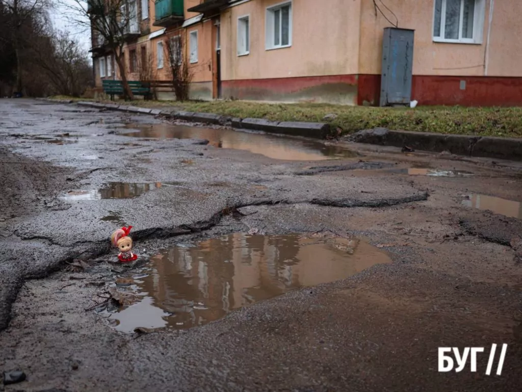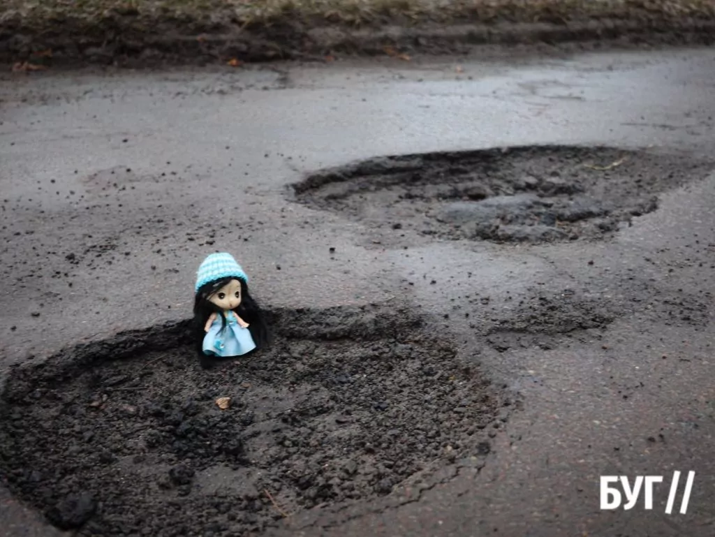 Небезпечна вибоїна дорівнює зросту Інспектора Лялі, а це 6 сантиментрів.