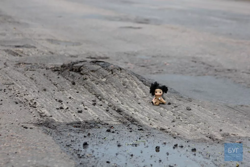 Нагадуємо, Інспектор Ляля в сидячому положенні має ріст 6 сантиметрів, тому і служить нам своєрідним мірилом, яке візуально показує, які глибокі та небезпечні насправді вибоїни на дорогах.