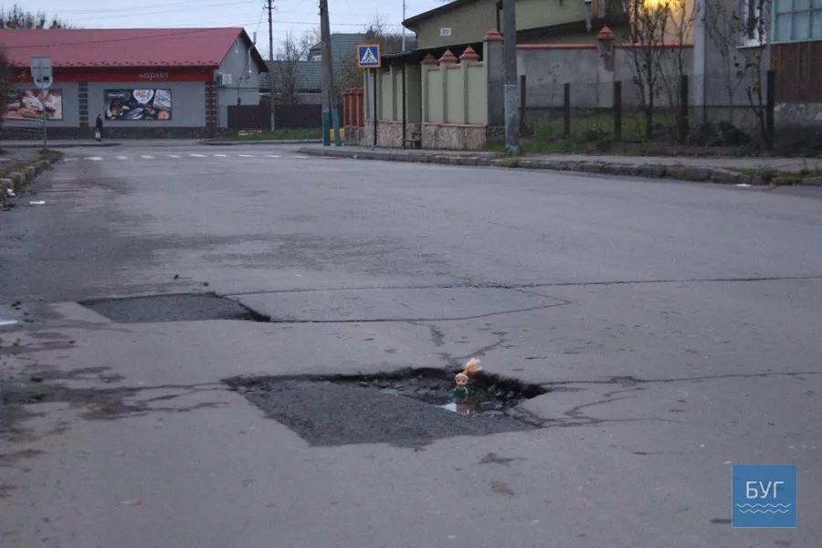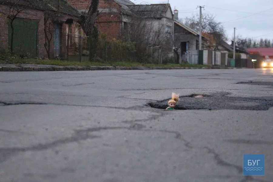 На прохання читачів БУГу інспектор Ляля завітала у Володимир-Волинський на вулицю Козацьку. Під час інспекції з’ясувала: найбільше ям на вулиці утворилося на місці латок, які зробили у 2019-му році. Деякі ями явно перевищують зріст Інспектора.