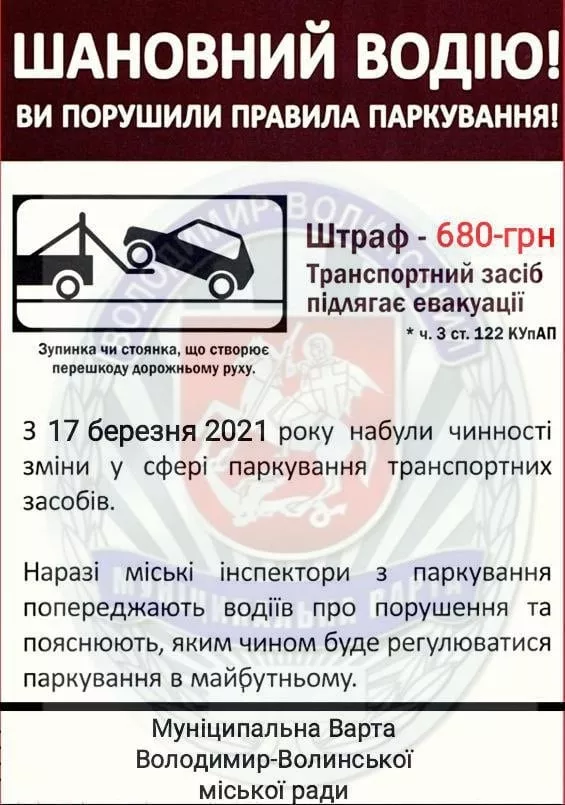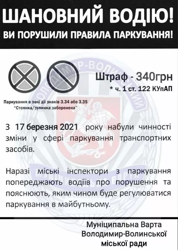 У Володимирі-Волинському вже працює інспектор з паркування. Поки що Андрій Садовський лише попереджає водіїв про порушення правил та проводить інформування. Згодом же замість інформаційних листівок водії, які лишили своє авто «під знаком», можуть знайти на лобовому склі повідомлення про штраф.