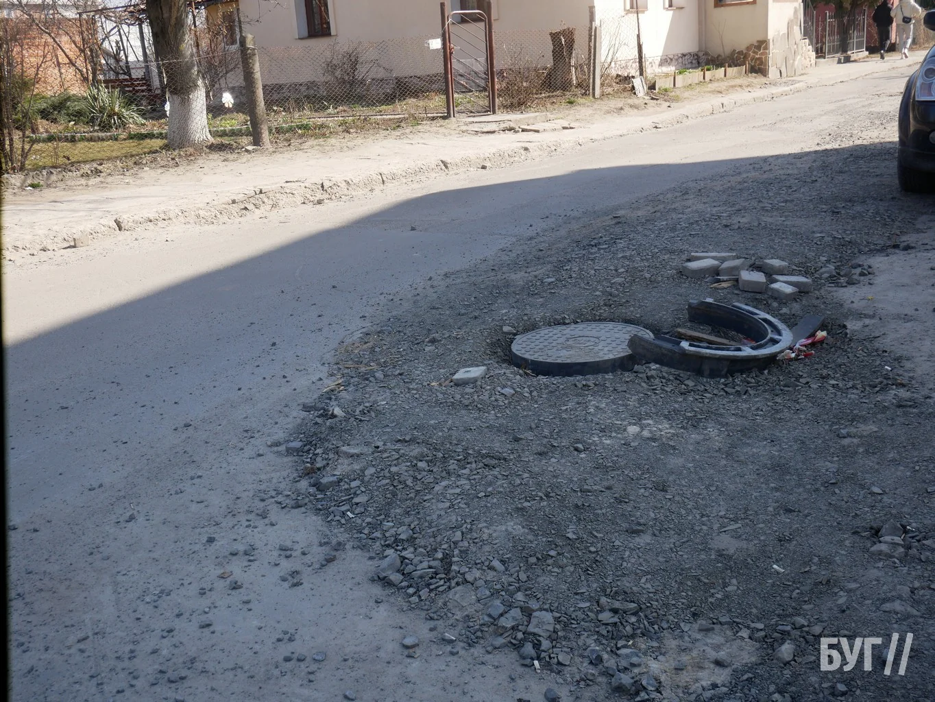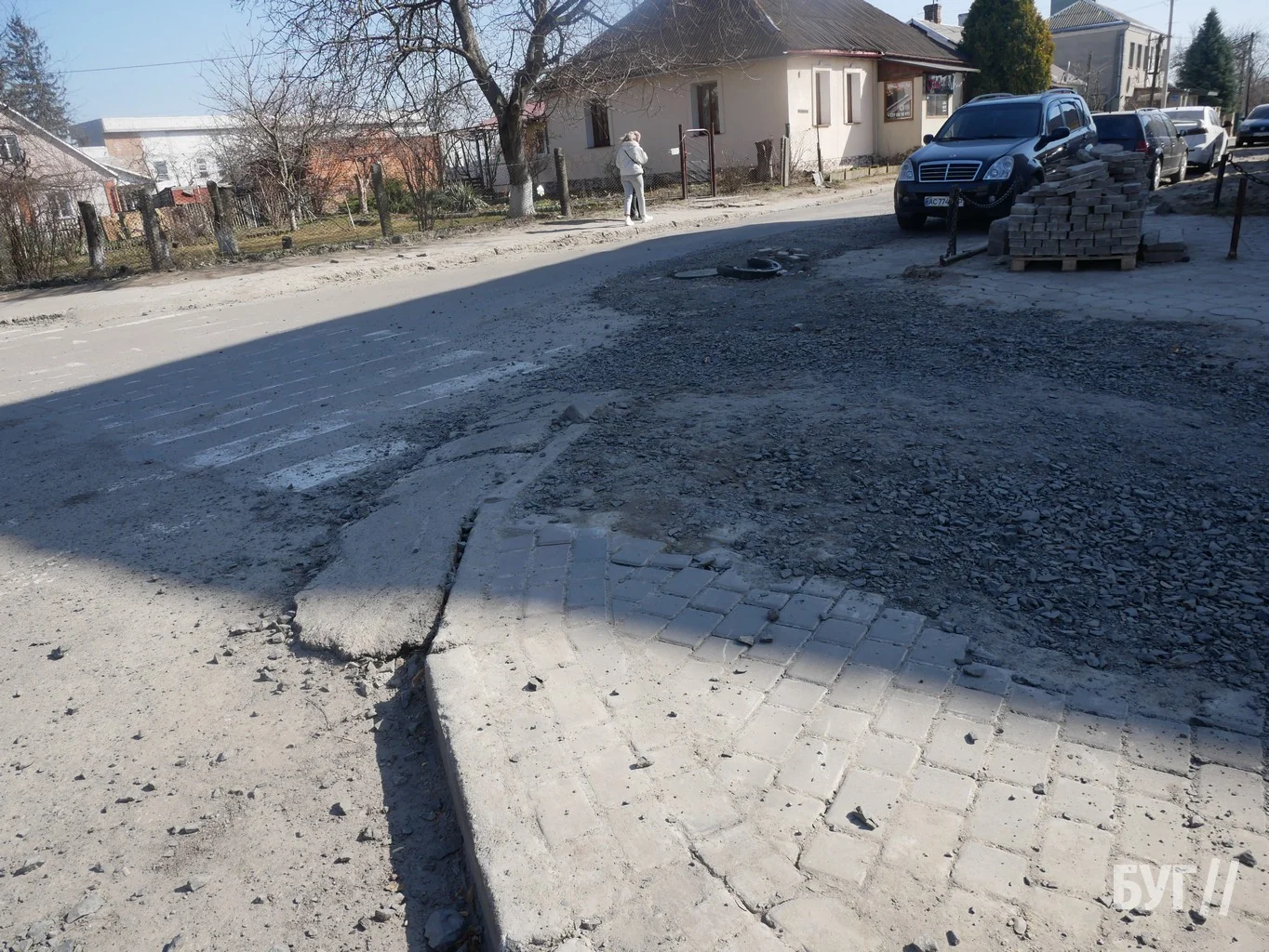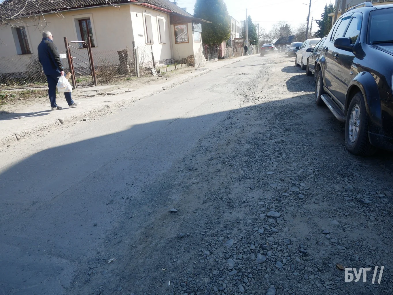 Дорожнє покриття потребує відновлення. Водіям доводиться маневрувати між ямами та камінням, а пішоходам складно пересуватись через пошкоджений тротуар.