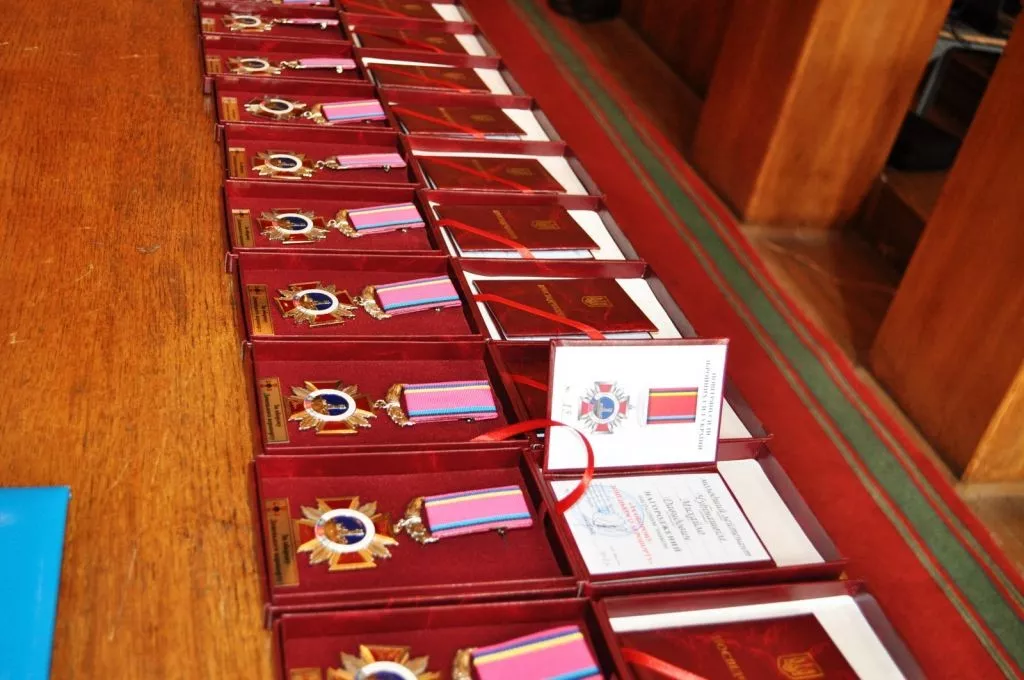В музеї історії України у Другій світовій війні (місто Київ), відбулося вручення відзнак ” За оборону Донецького аеропорту» «кіборгам», які героїчно захищали летовище.