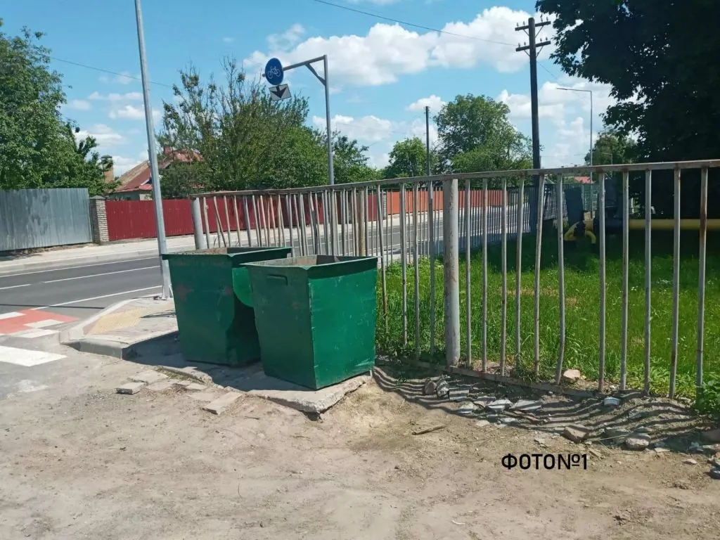 Працівники КП «Полігон» 15-го червня прибрали сміттєві контейнери, які були встановлені на вулиці Незалежності, біля входу на Лодомирське кладовище.
