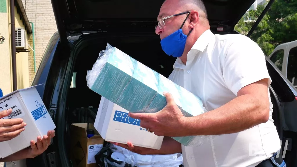 Лідер обласного осередку партії «Основа» передав медикам Володимира костюми та засоби індивідуального захисту