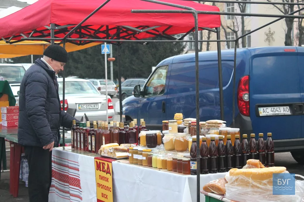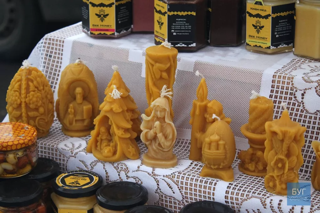 В першій половині дня підприємці виставили на продаж різноманітний мед, пилок, прополіс, віск, крем-мед, який виготовляють у Ковелі.