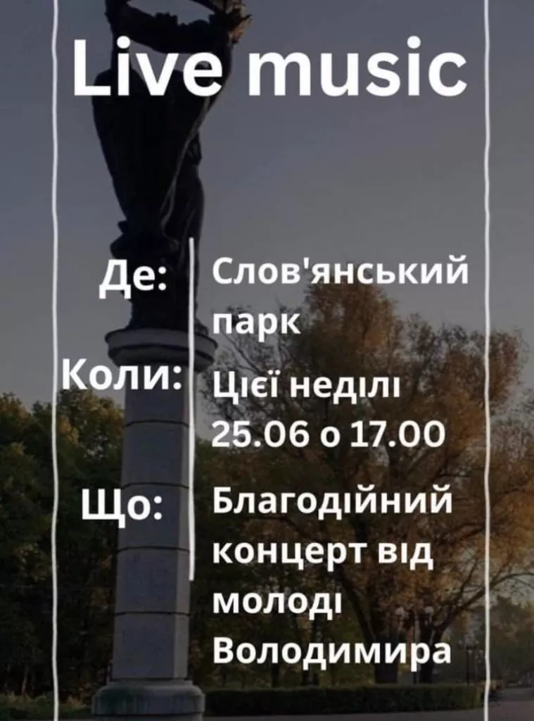 25-го червня мешканців міста запрошують на благодійний концерт молоді Володимира, який відбудеться у парку «Слов’янський».