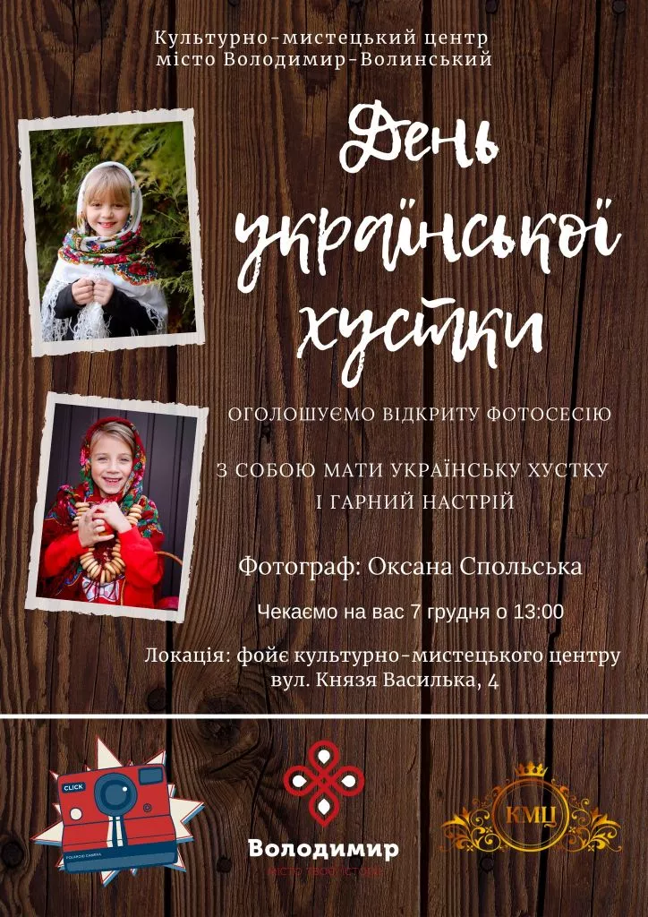 7-го грудня о 13:00 в культурно-мистецькому центрі Володимира відбудеться безкоштовна фотосесія, присвячена Дню української хустки.