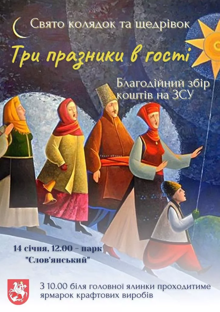 14-го січня о 12.00 у парку «Слов’янському» відбудеться свято колядок та щедрівок «Три празники в гості» за участю творчих колективів міста і громад Володимирського району.