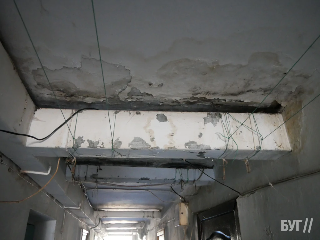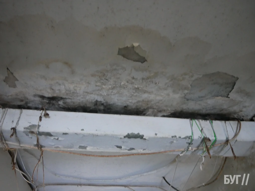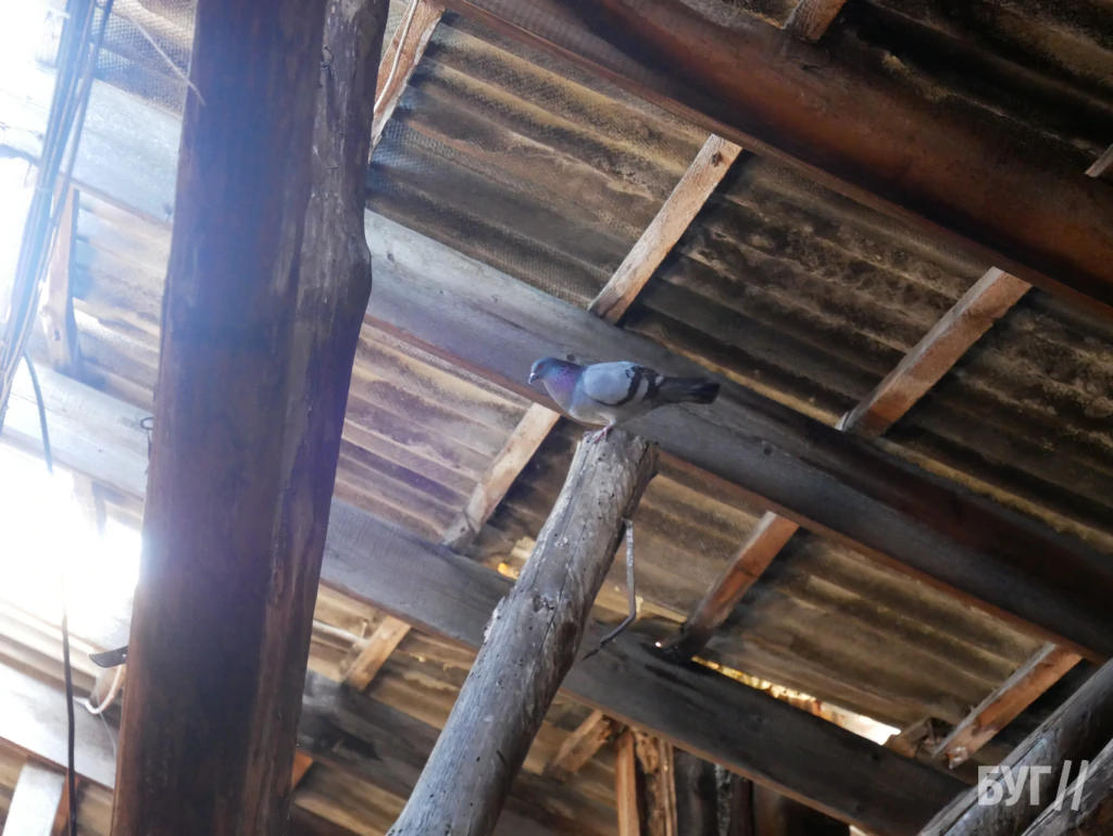 Журналісти інтернет-видання «БУГ» відвідали багатоповерхівку й піднялися на аварійне горище. Побачене вражає: крізь величезні дірки у даху залітають голуби, немов у закинуту будівлю. Всередині – пронизливий протяг, сирість і пліснява. Дах у великих дірках, балки гнилі й небезпечно провисають.