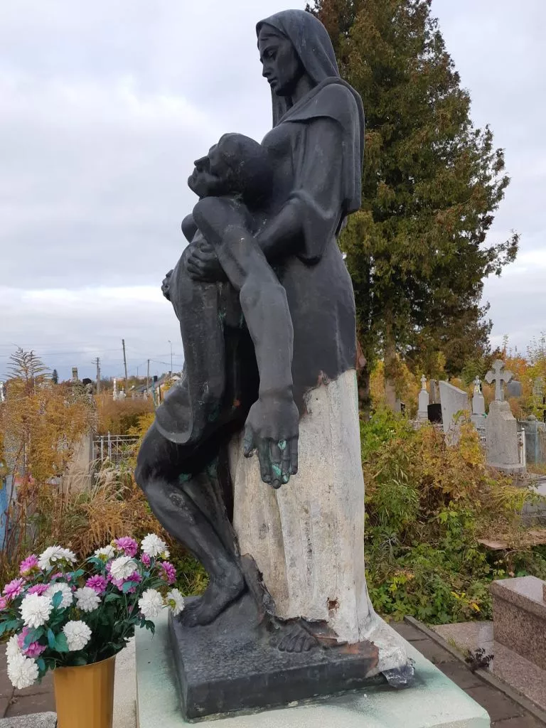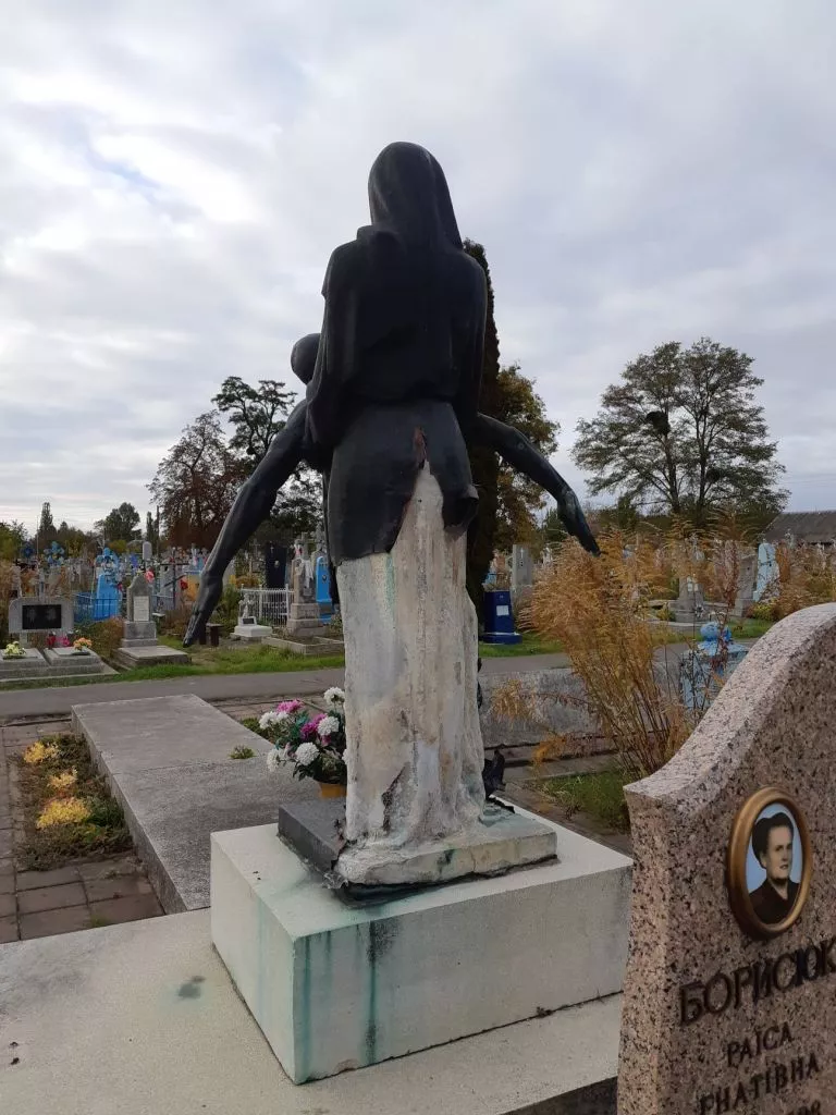 “За три місяці вандали “роздягнули”, “розтягнули” бронзу на скульптурі жінки, колективного поховання солдат, що загинули у роки Другої Світової війни”, – скаржиться чоловік.