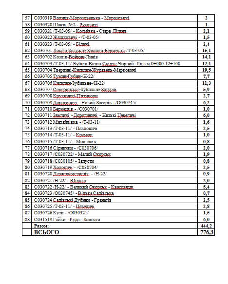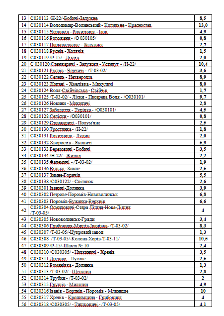 Список доріг у Володимирському районі, які обслуговуватимуть взимку: