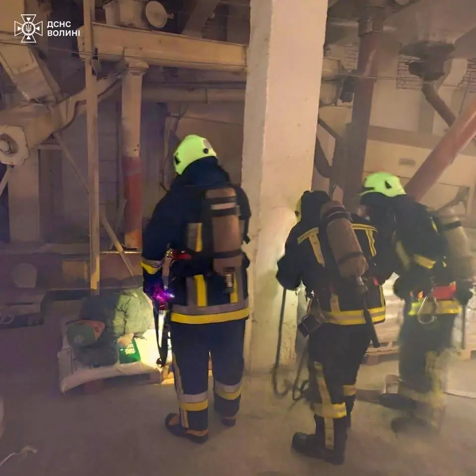 Рятувальники провели пожежно-тактичні навчання на об’єктах зберігання зернових у Володимирському районі. За легендою загоряння виникло у виробничому приміщенні, є потерпілий працівник.