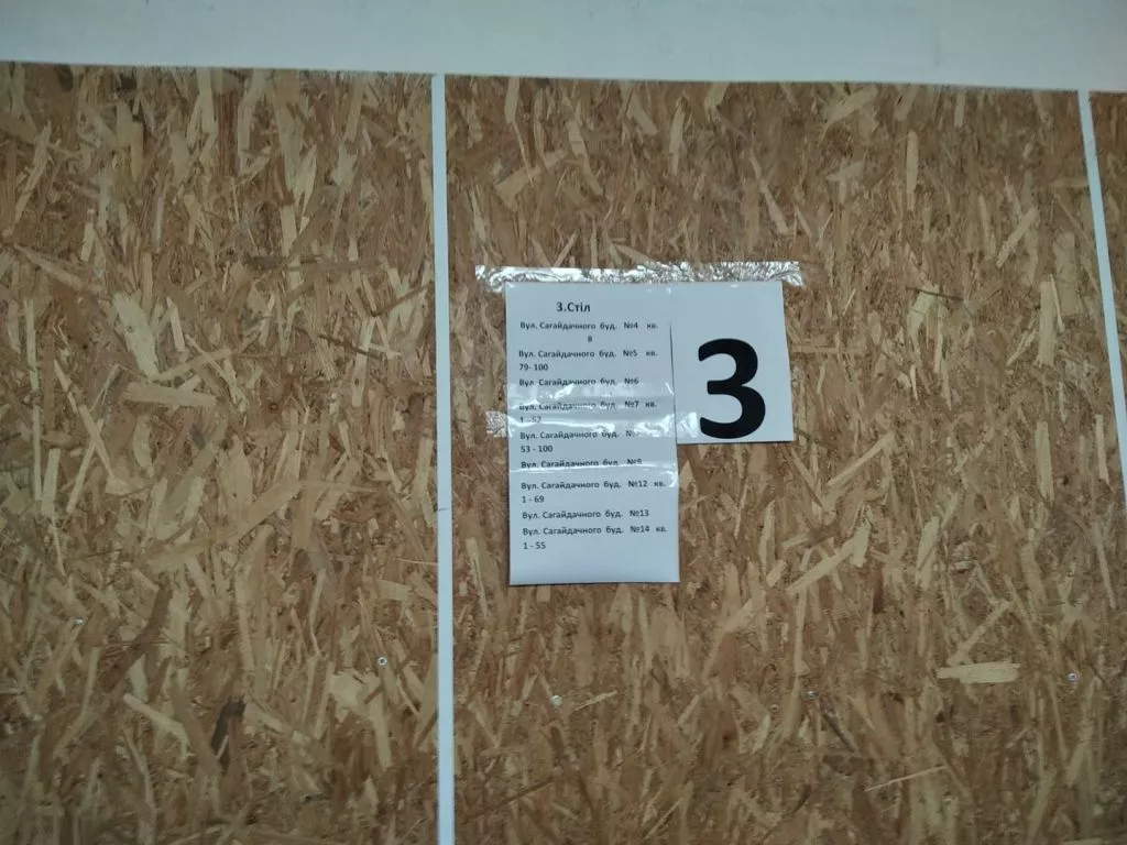 Перед входом на дільницю висять списки: голова ТВК рекомендувала задля недопущення скупчення людей розмістити столи за певними вулицями, розділити їх територіально.