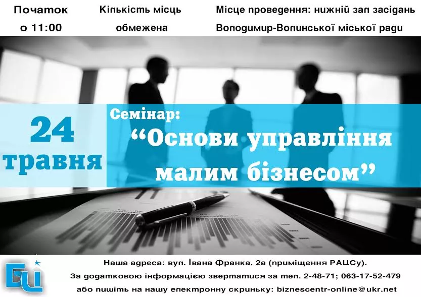 Володимир-Волинський фонд підтримки підприємництва «Бізнес-Центр» запрошує власників бізнесу 24 травня на семінар з Веронікою Бормовою на тему «Основи управління малим бізнесом». Початок зустрічі: 24 травня, середа, 11:00. Місце зустрічі: нижній зал засідань Володимир-Волинської міської ради, вул. Данила Галицького, ...
