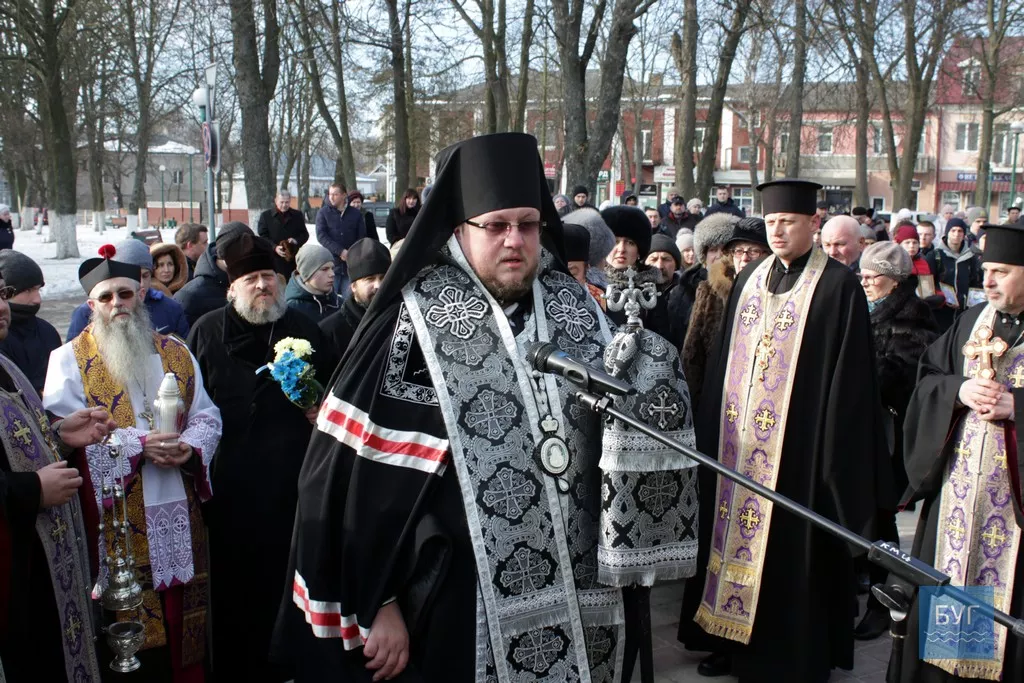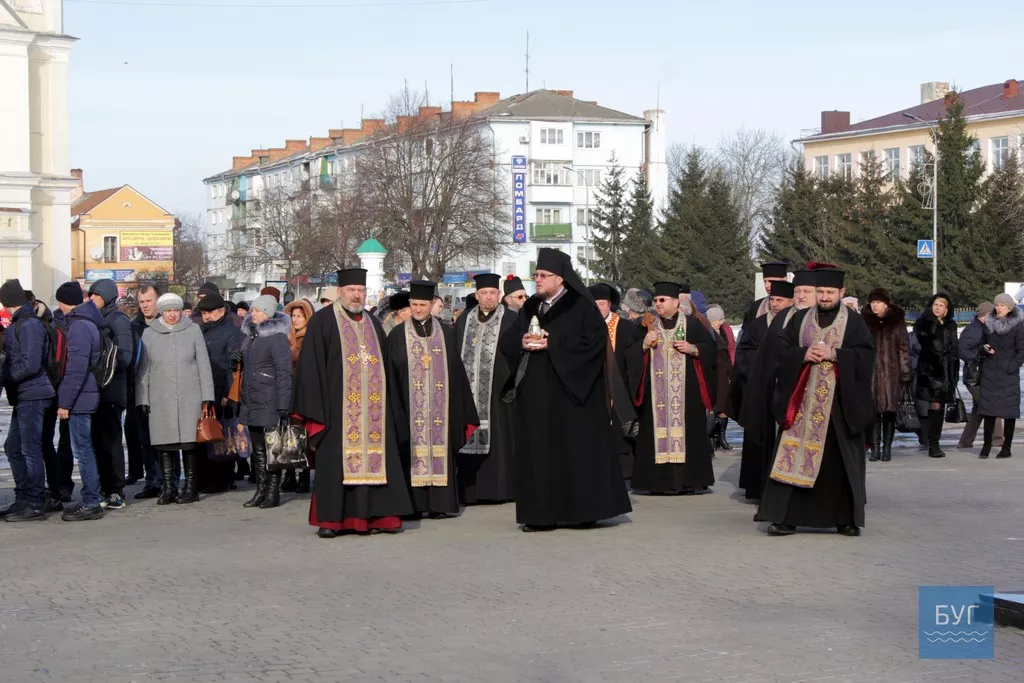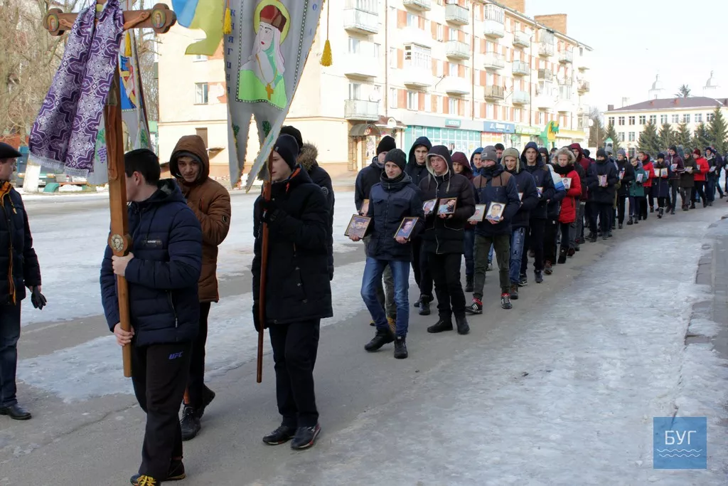 Від Собору Різдва Христового вирушила хода із священиками та учнями, які несли фотографії загиблих. Зупинилися біля стели Героям АТО. Можновладці міста, району, об’єднаних громад та духовество поклали квіти до стели.