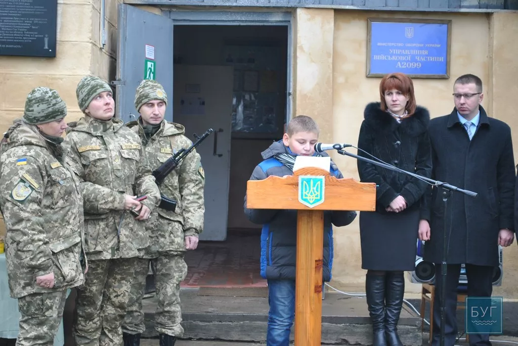 Право відкрити меморіальну дошку надали старшим солдатам В’ячеславу Гребенюку та Сергію Гребенюку. Після урочистого відкриття військовий оркестр заграв Державний Гімн України.