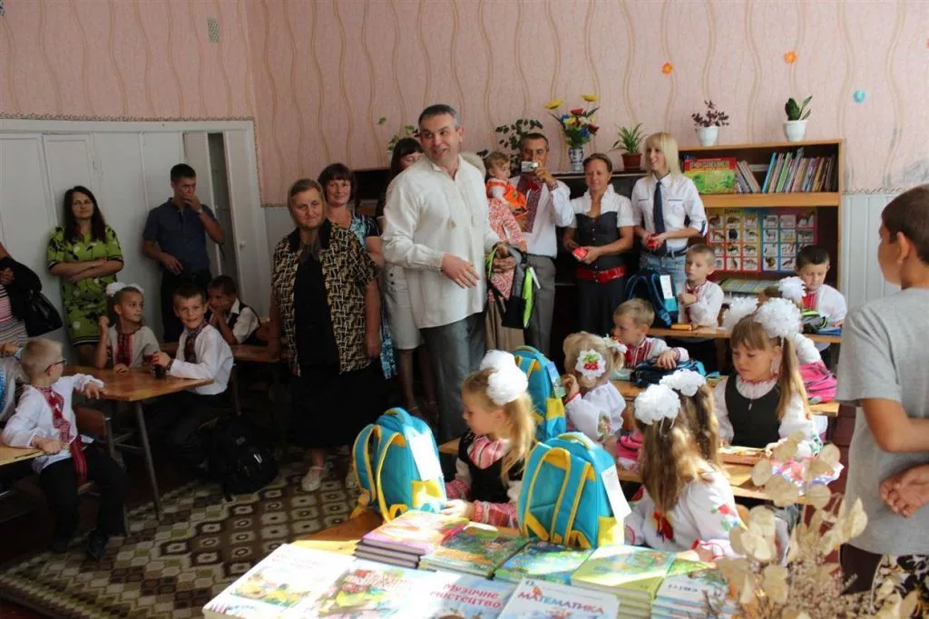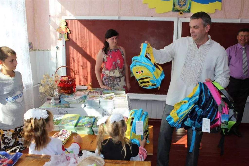 Павло Карпюк на перше вересня подарував першачкам рюкзаки для навчання