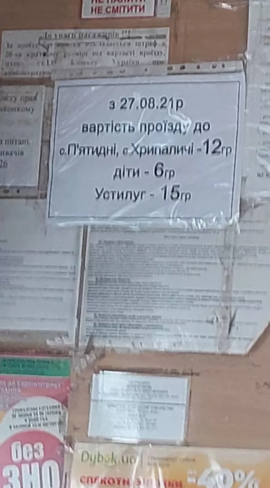 Проїзд у маршрутці №21, яка слідує з Володимира до села П’ятидні (ввечері один рейс до Устилуга), коштує тепер 12 гривень для дорослих і 6 гривень для дітей.
