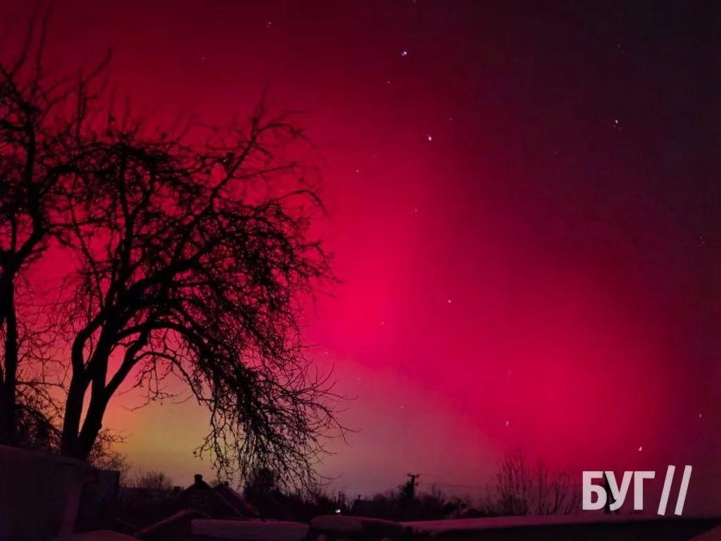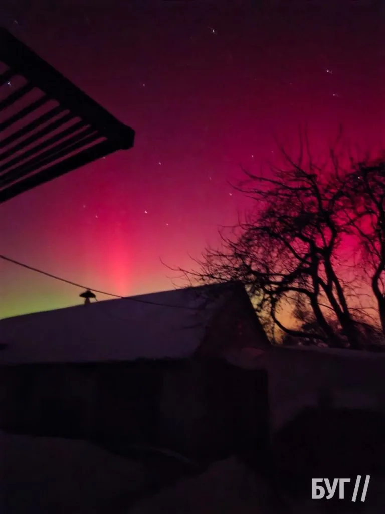 Північне сяйво над Володимирським районом: небо спалахнуло зеленими та рожевими відтінками