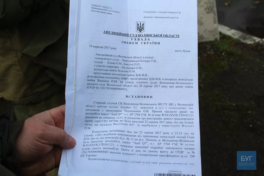 Власник авто, Петро Власюк показав, що отримав ухвалу апеляційного суду про скасування рішення першої інстанції та авто йому повинні ще були повернути в середині вересня (Ухвала суду від 19-го вересня). Однак працівники правоохоронних органів цього не робили, допоки чоловік не звернувся до активістів Рівненщини та Волині.