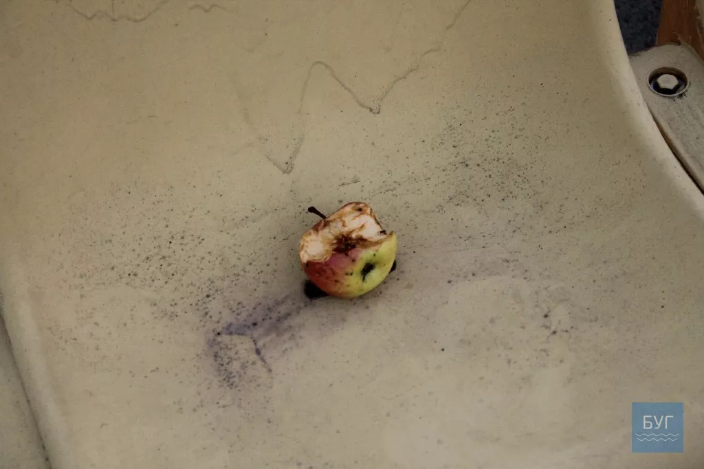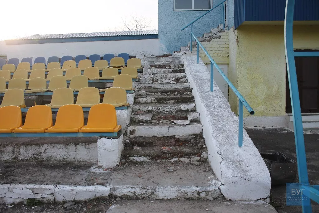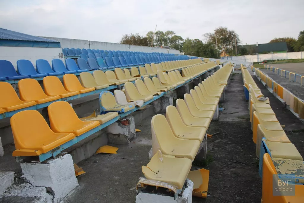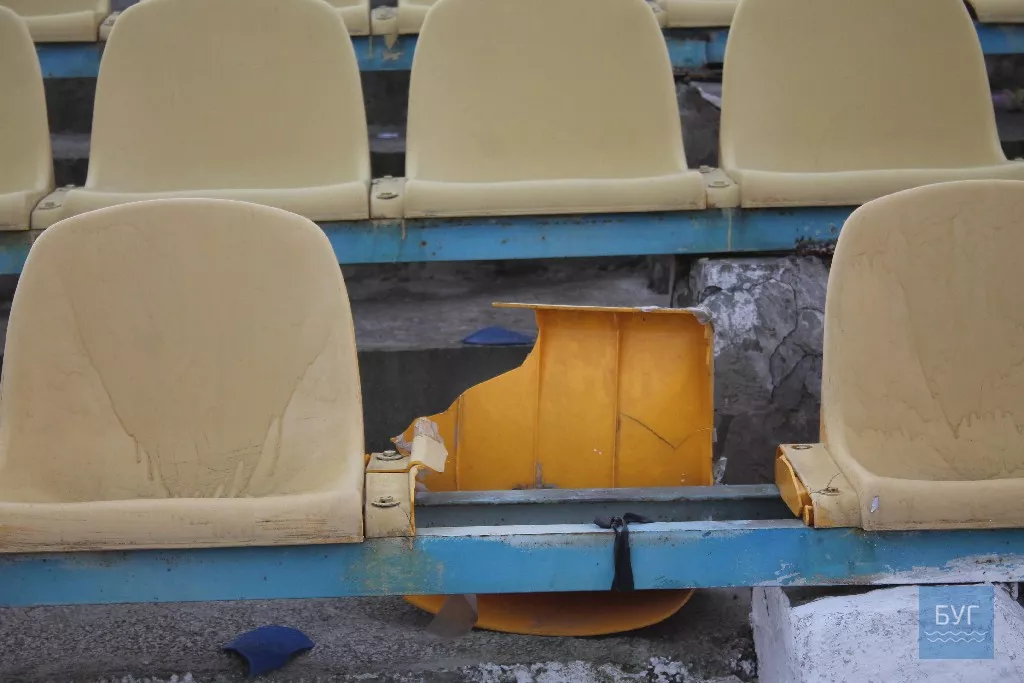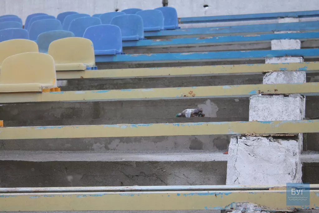 Жаль, що люди не вміють цінувати речей, що належать громаді міста. На трибунах валяються побиті сидіння, пляшки з-під пива, сміття від соняшникового насіння, на сидіннях – недоїджене кимось яблуко. На території, звісно, встановлені великі та маленькі смітники. Видно, як основа трибуни тріскає та обвалюються сходи.