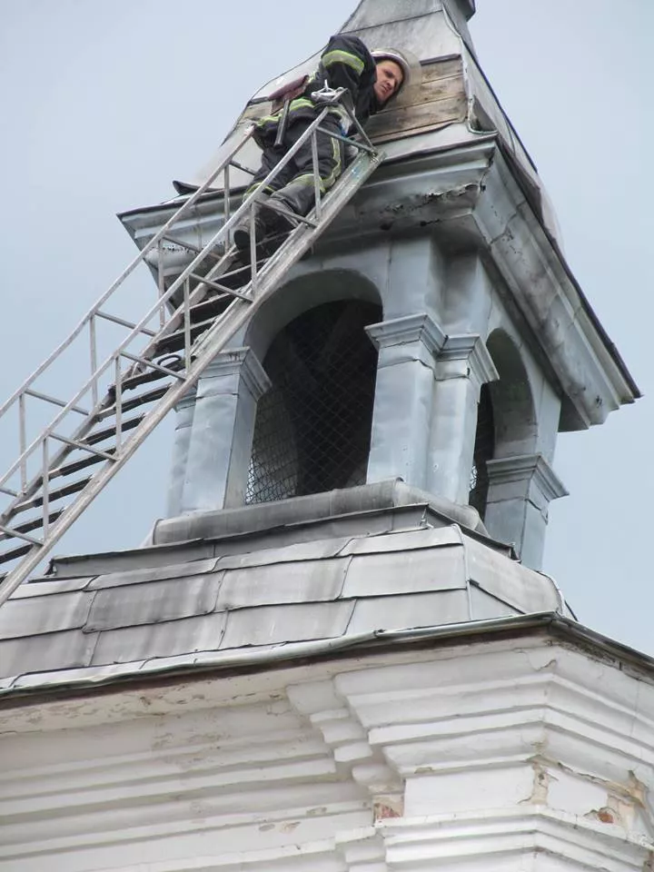 Пошкоджену внаслідок негоди покрівлю однієї з веж костелу святих Якима та Ганни відремонтував спеціаліст рятувальної служби у Володимир – Волинському Юрій Васько. Висота вежі понад двадцять метрів. Спеціальний автомобіль з драбиною надано місцевим відділенням рятувальної служби. Костел св.Якима та Ганни – памятка архітекутури національного значення 18 століття.”, – написав у фейсбуці Володимир Стемковський
