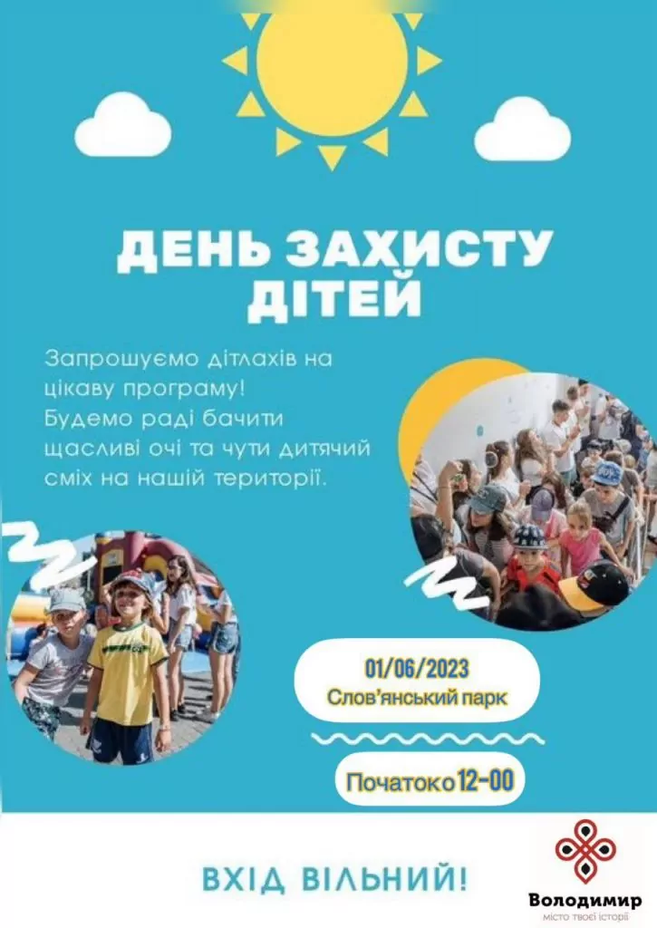 1-го червня з нагоди Міжнародного дня захисту дітей у парку «Слов’янський» у Володимирі розгорнеться ціле містечко з десятком цікавих локацій, де для дітей різного віку будуть організовані веселі розваги, конкурси, змагання, майстеркласи та частування смаколиками.