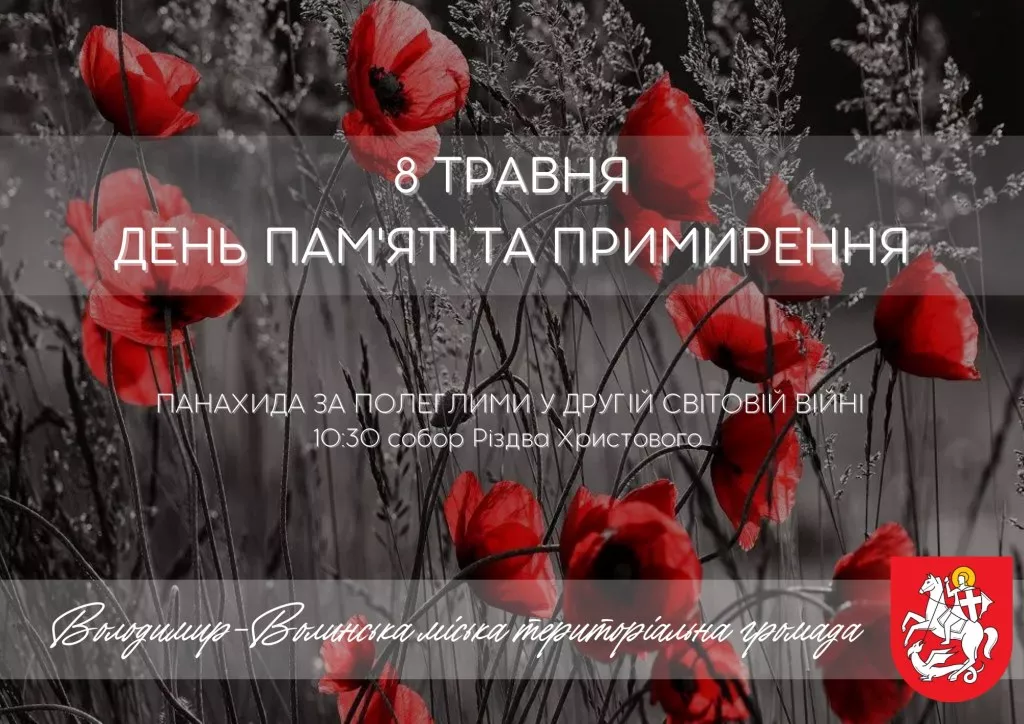 8-го травня у День пам’яті та примирення у соборі Різдва Христового у Володимирі після недільної служби, а саме о 10:30, відбудеться панахида за загиблими у Другій світовій війні.