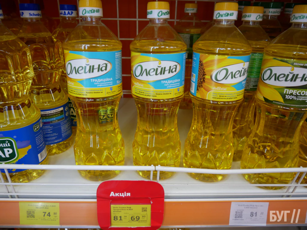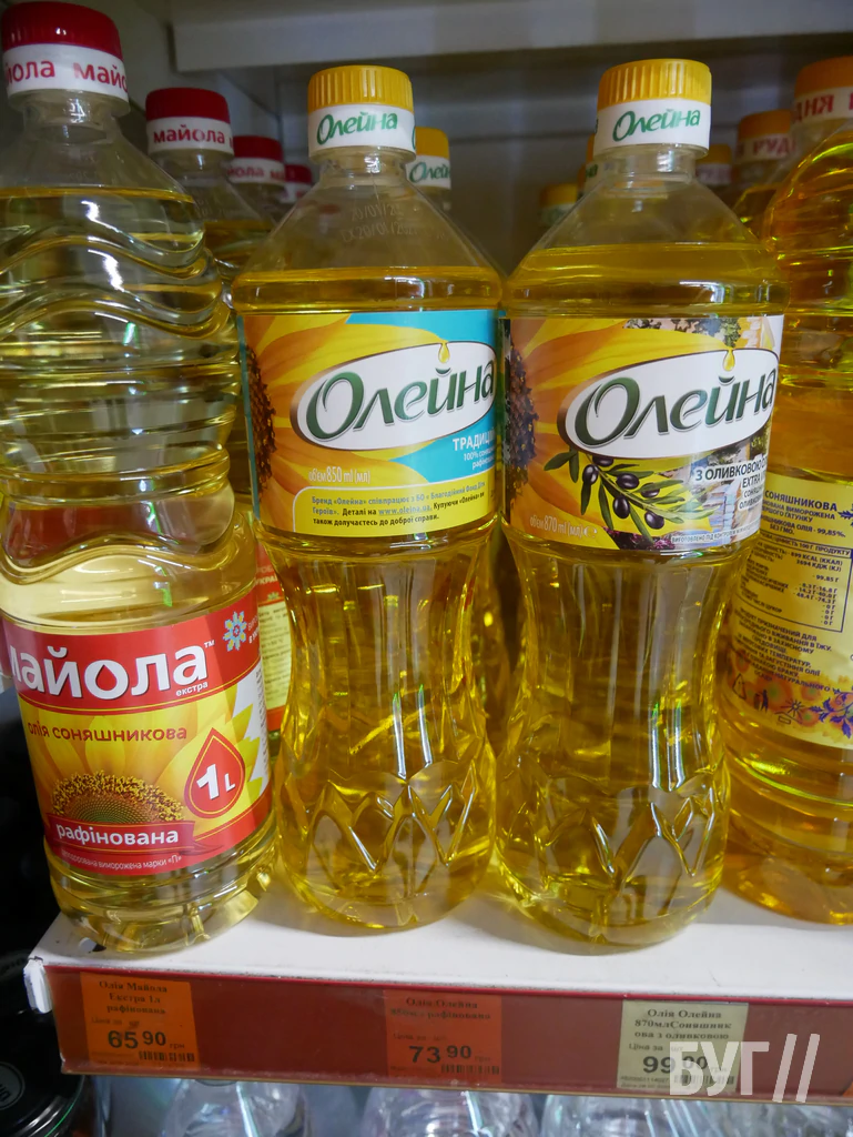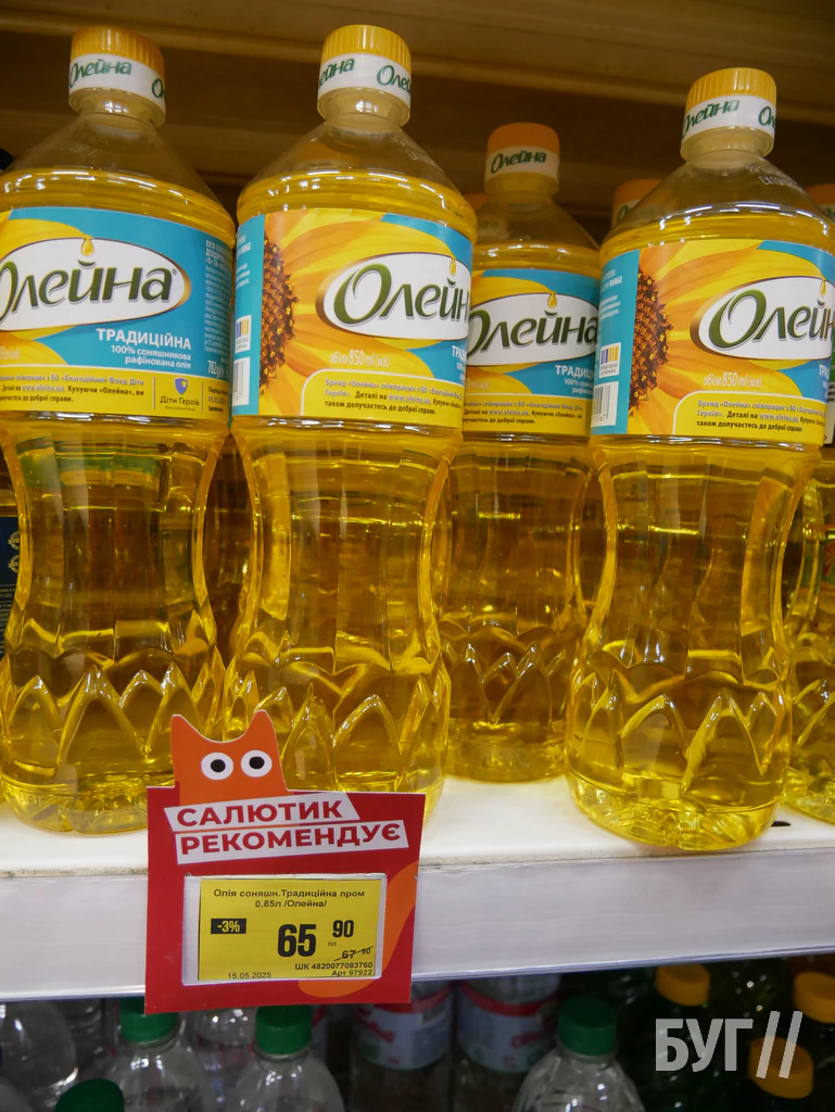Станом на 19-те травня 2025-го року журналісти БУГу порівняли вартість пляшки рафінованої соняшникової олії “Олейна” у різних супермаркетах міста Володимир.
