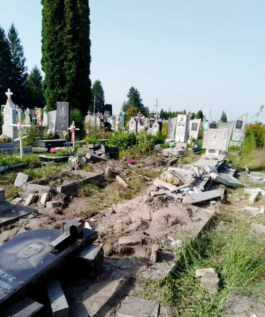 Внаслідок аварії були пошкоджені огорожа кладовища та кілька пам’ятників у першому секторі поховань, йдеться на фейсбук-сторінці КП “Полігон”.