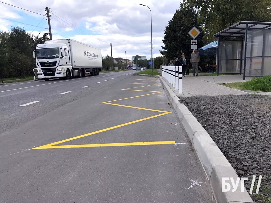 Також біля пам’ятника-танка з’явилася нова розмітка, яка позначає місце зупинки маршрутного таксі та забороняє зупинятися іншим транспортним засобам.