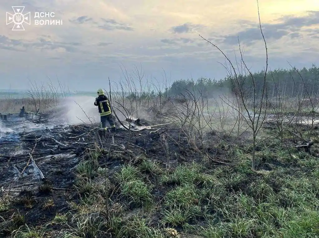 О 19:29 у Володимирі — зайнялася суха трава на площі 0,2 га. Пожежу приборкали підручними засобами пожежогасіння рятувальники 7 ДПРЧ м. Володимир.