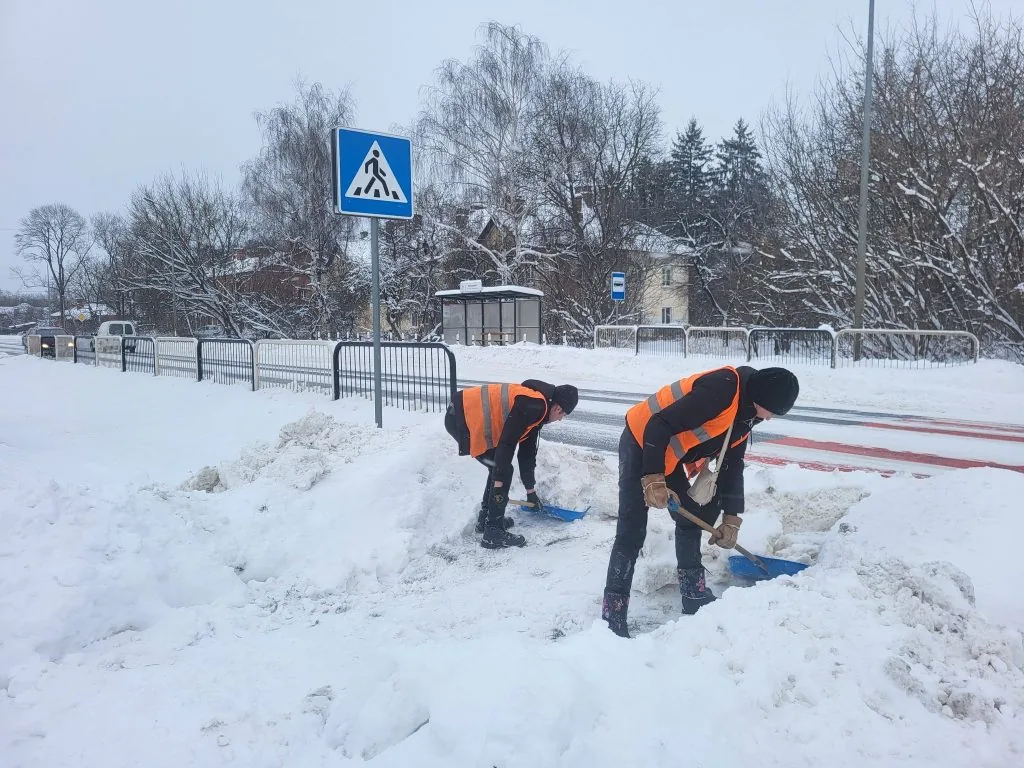 Там, де велика техніка не може пройти, до роботи долучаються двірники. Вони очищають пішохідні переходи, зупинки громадського транспорту та місця найбільшого скупчення людей.
