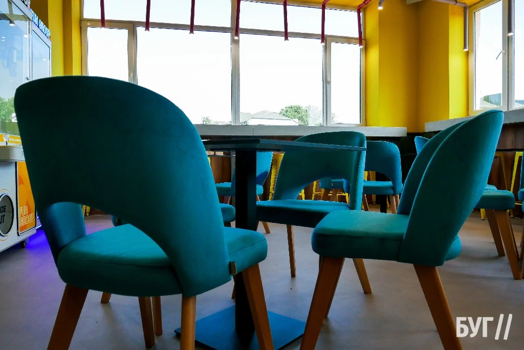 Поки діти розважаються, дорослі можуть попити каву, з’їсти смачну піцу, чи солодощі у кафе, що знаходиться поруч. Також піцу можна замовляти на доставку чи самовиніс, на неї діє акція 1+1, при замовленні однієї піци, інша – в подарунок.