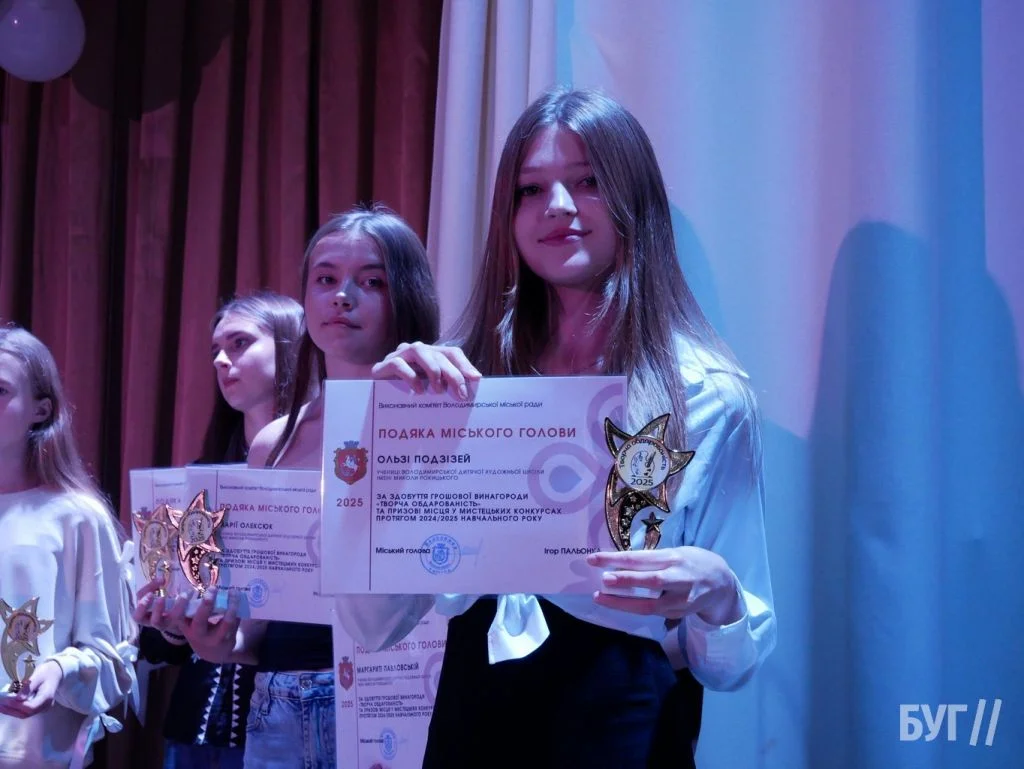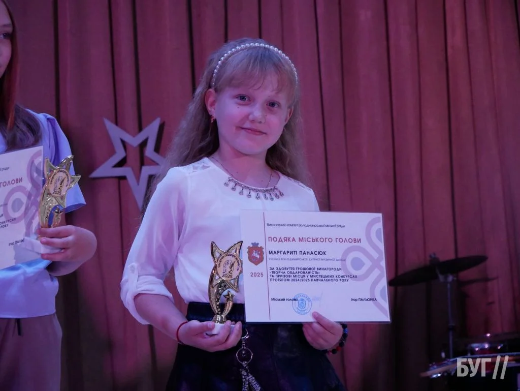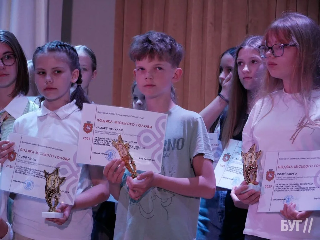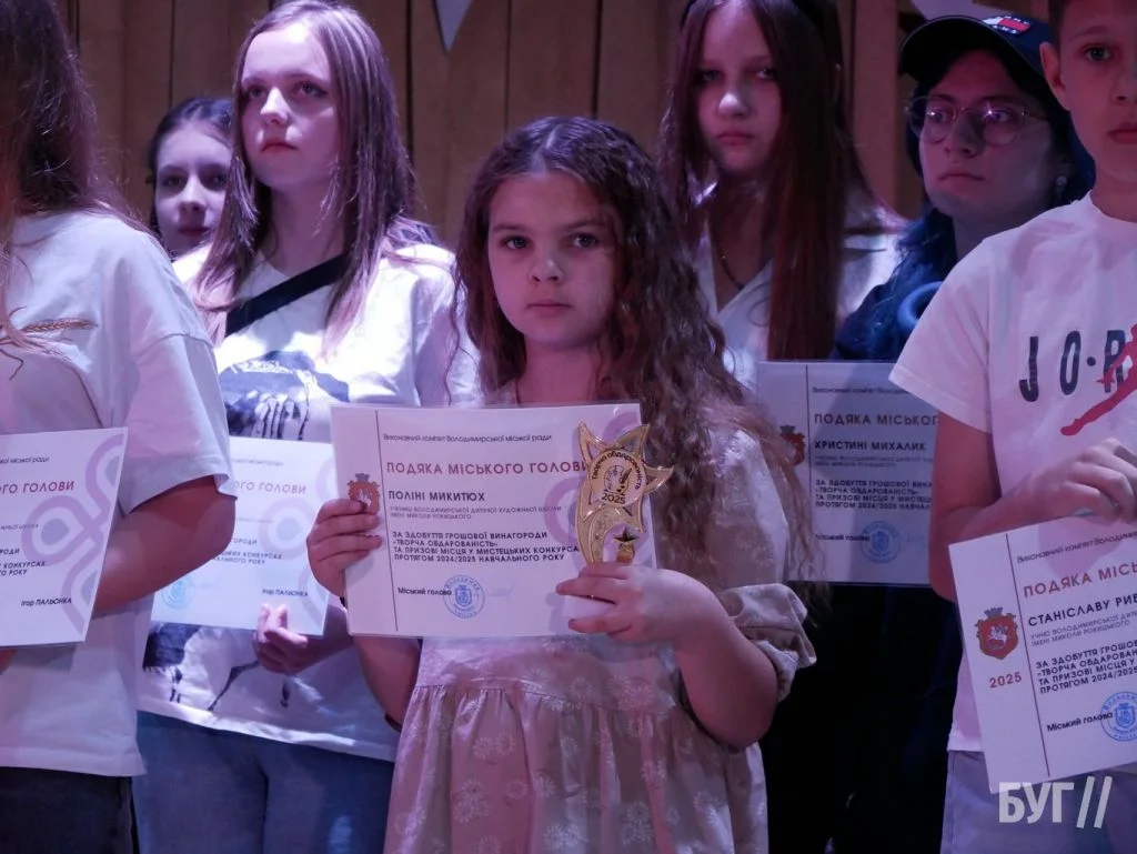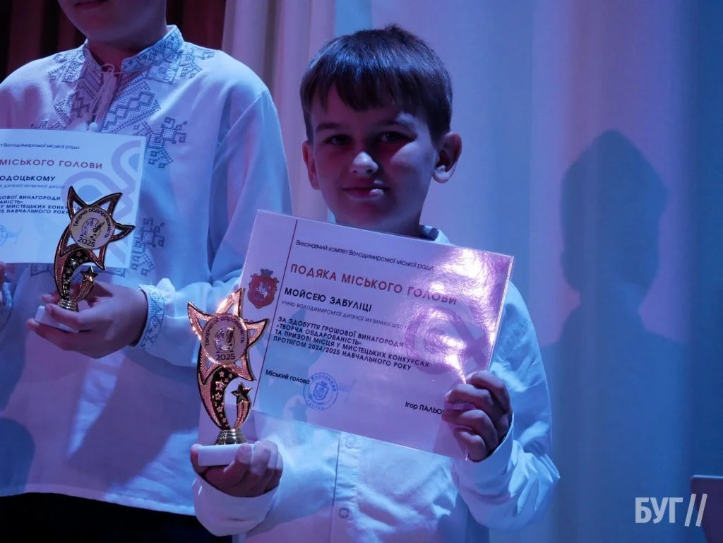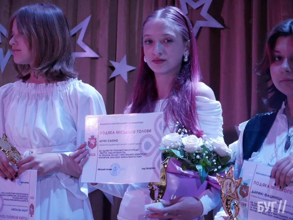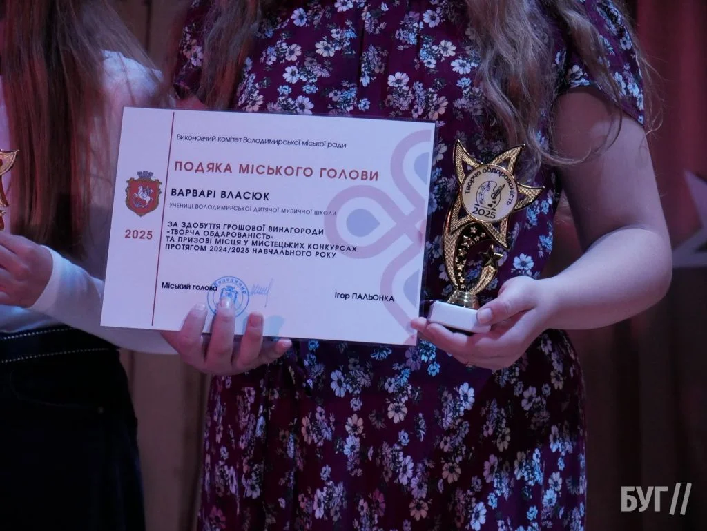 Секретар міської ради Іван Юхимюк та начальниця відділу культури і мистецтва Олена Омелюх вручили Подяки міського голови, грошові винагороди та статуетки «Творча обдарованість» 52 учням Володимирської дитячої музичної школи й 107 учням дитячої художньої школи імені Миколи Рокицького. Ці відзнаки — символ визнання щоденної праці, наполегливості та віри у власні сили.