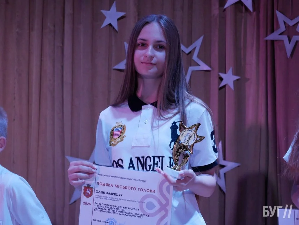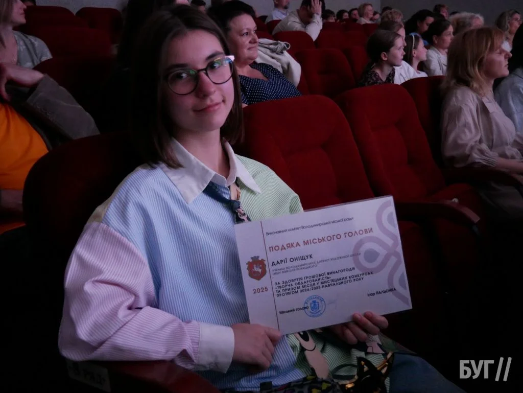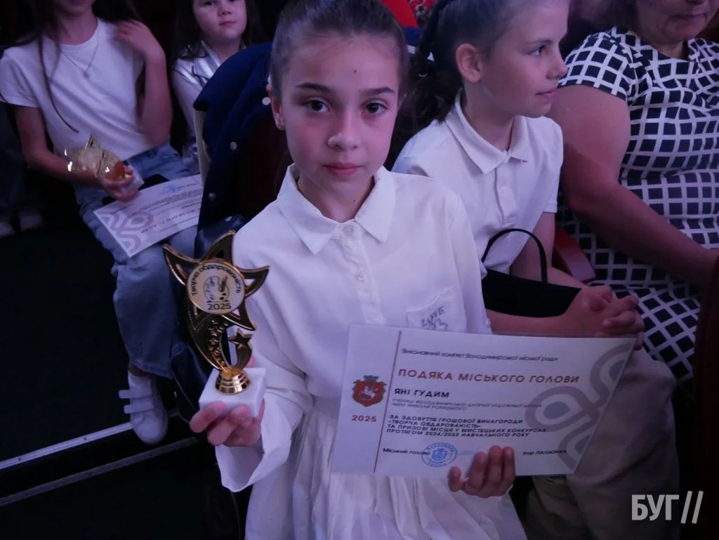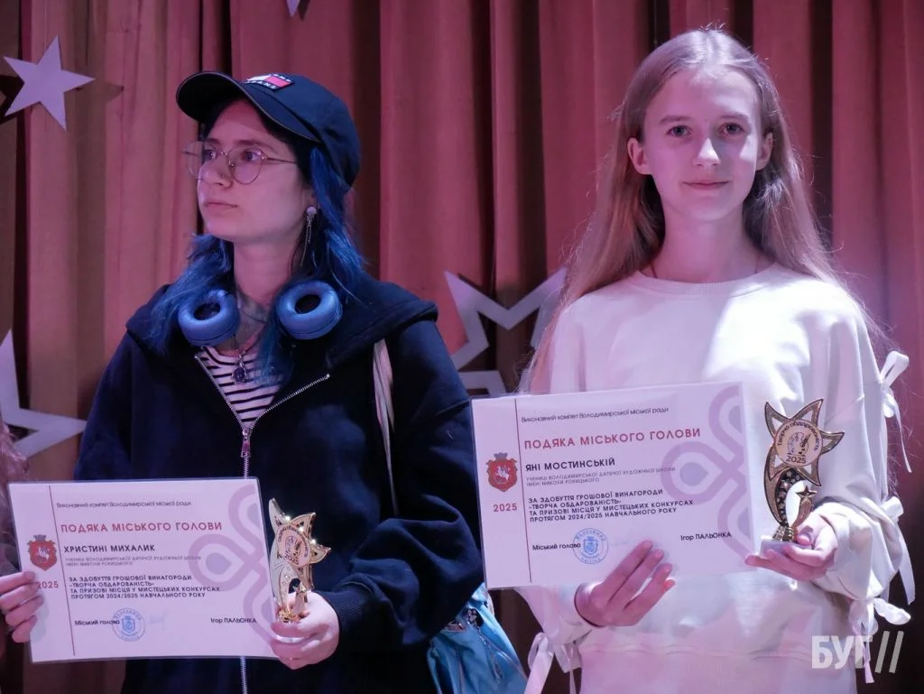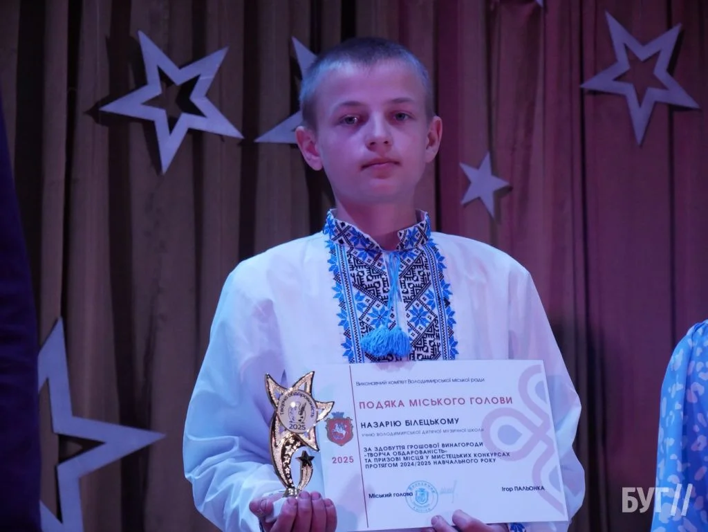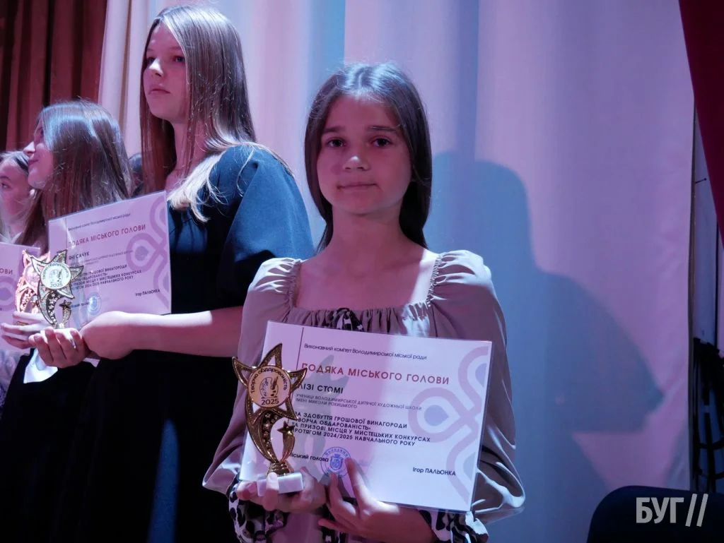 Секретар міської ради Іван Юхимюк та начальниця відділу культури і мистецтва Олена Омелюх вручили Подяки міського голови, грошові винагороди та статуетки «Творча обдарованість» 52 учням Володимирської дитячої музичної школи й 107 учням дитячої художньої школи імені Миколи Рокицького. Ці відзнаки — символ визнання щоденної праці, наполегливості та віри у власні сили.