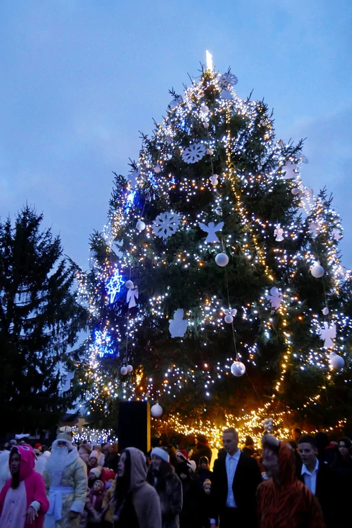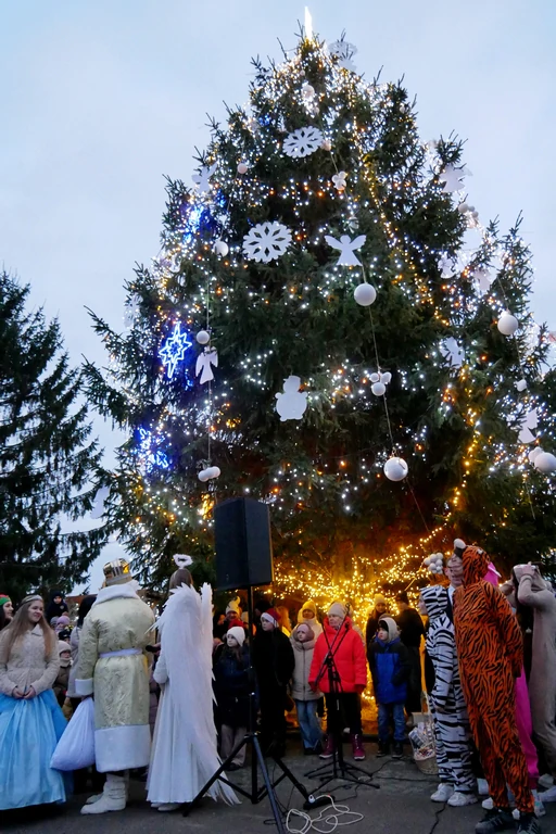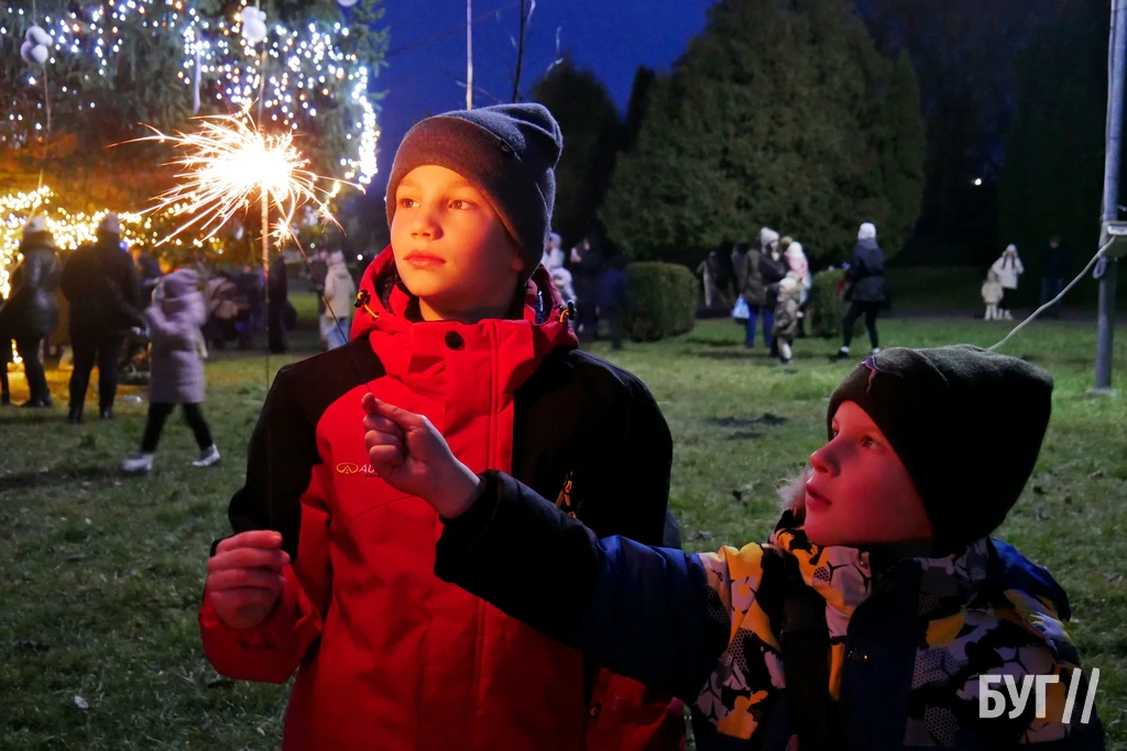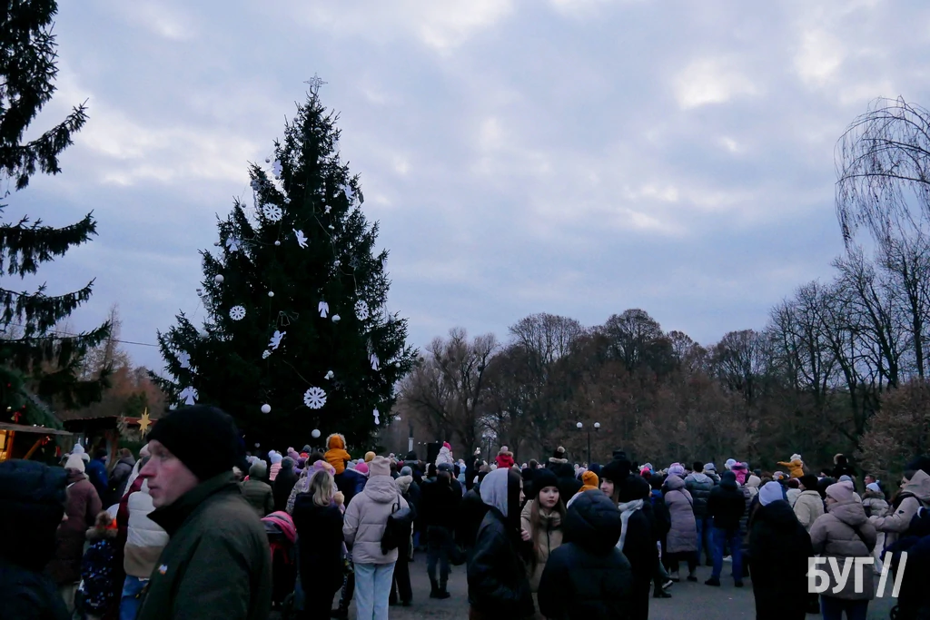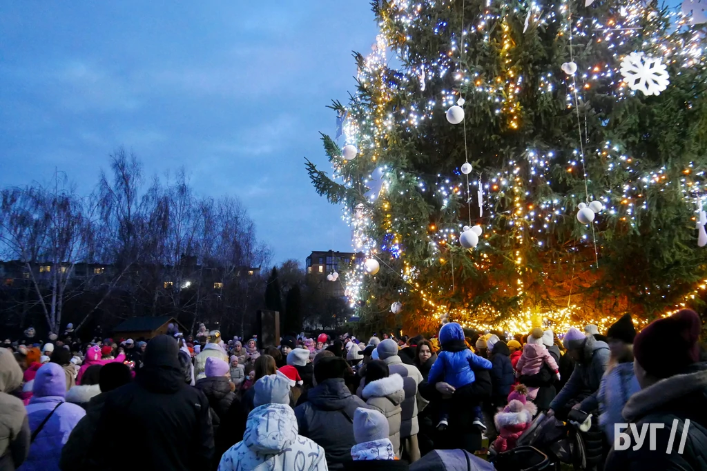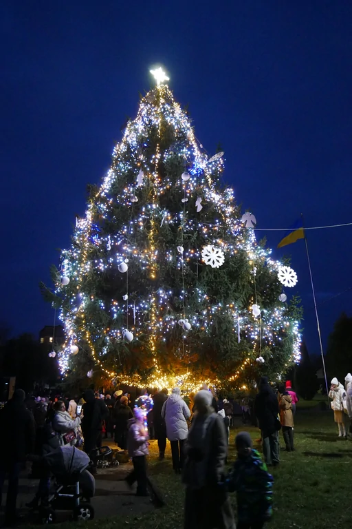 Цього року, як і попередні два, прикрасили живу ялинку, яка росте у парку “Слов’янський”. Попри відсутність снігу, панувала справжня святкова, радісна атмосфера. Засвітити головну ялинку міста прийшло чимало дітлахів різної вікової категорії зі своїми батьками.