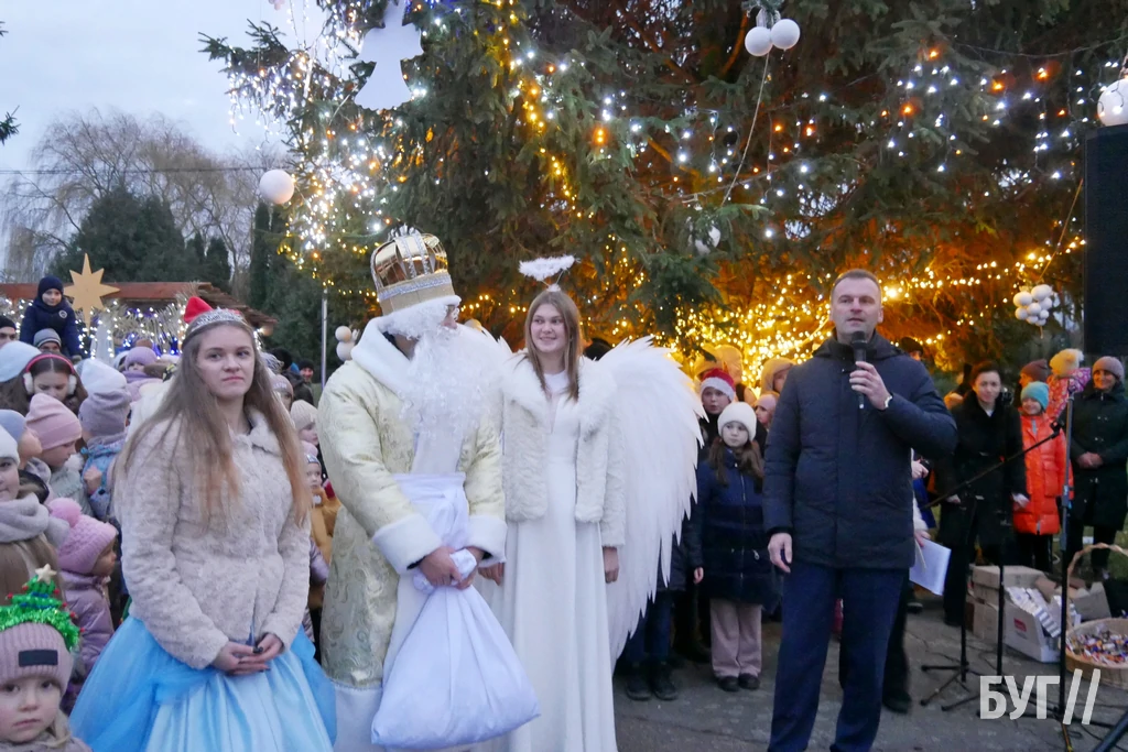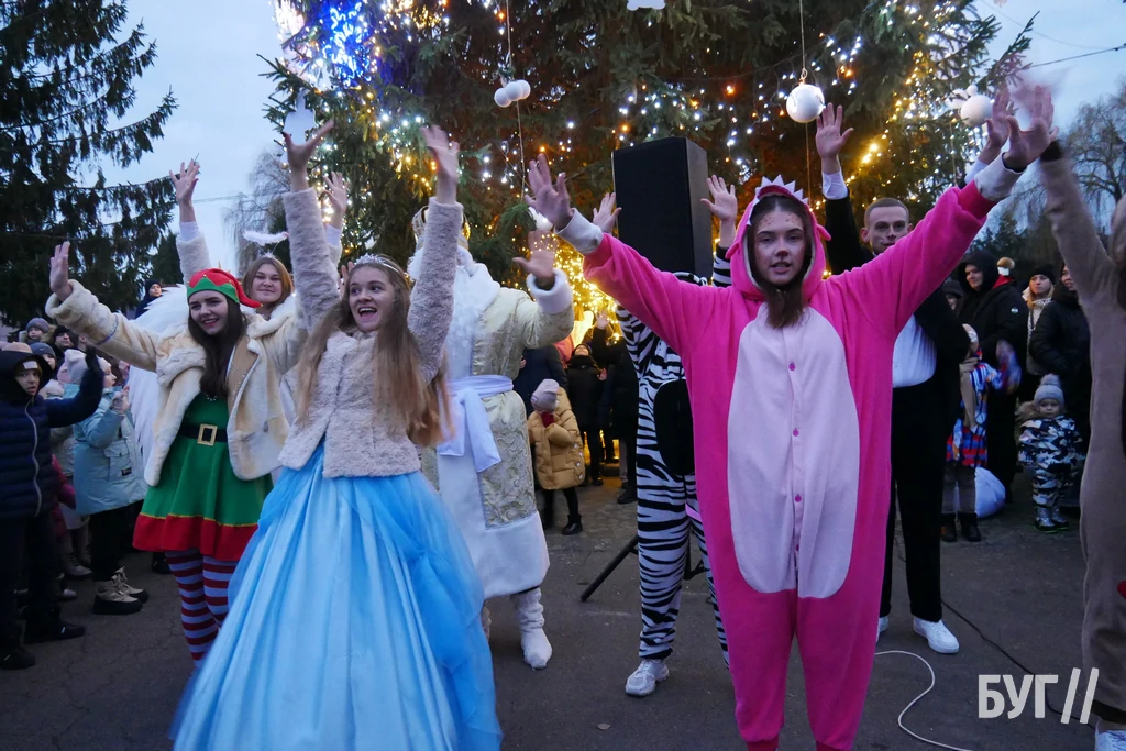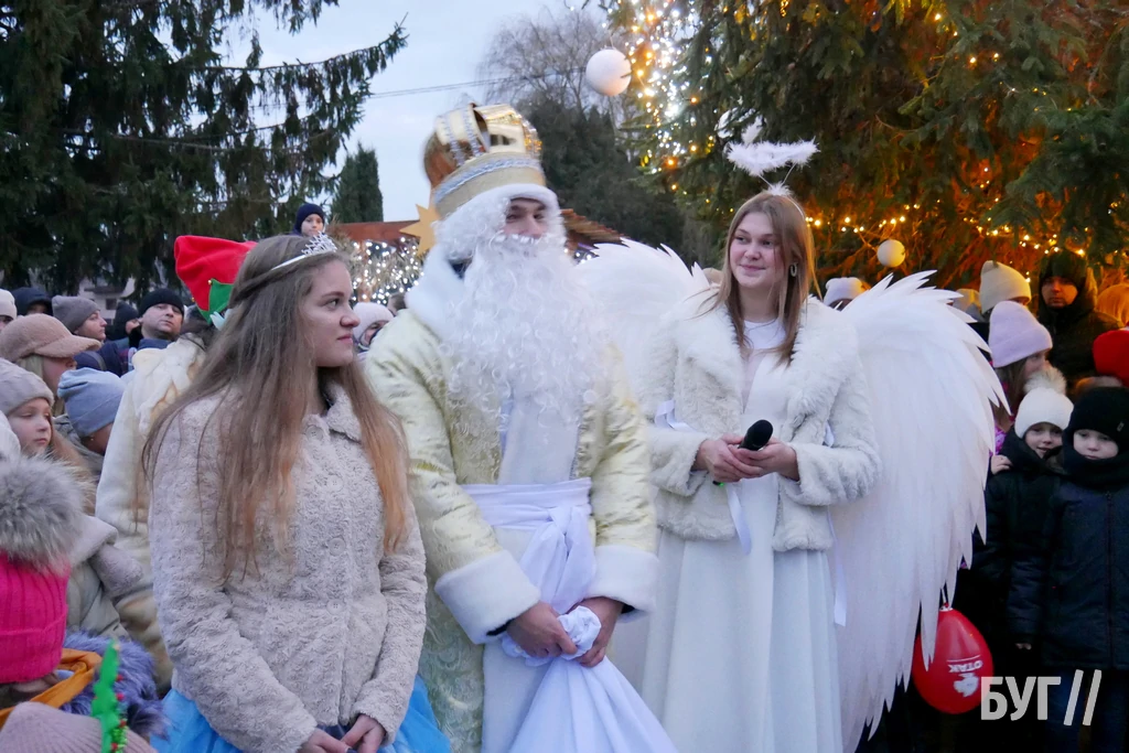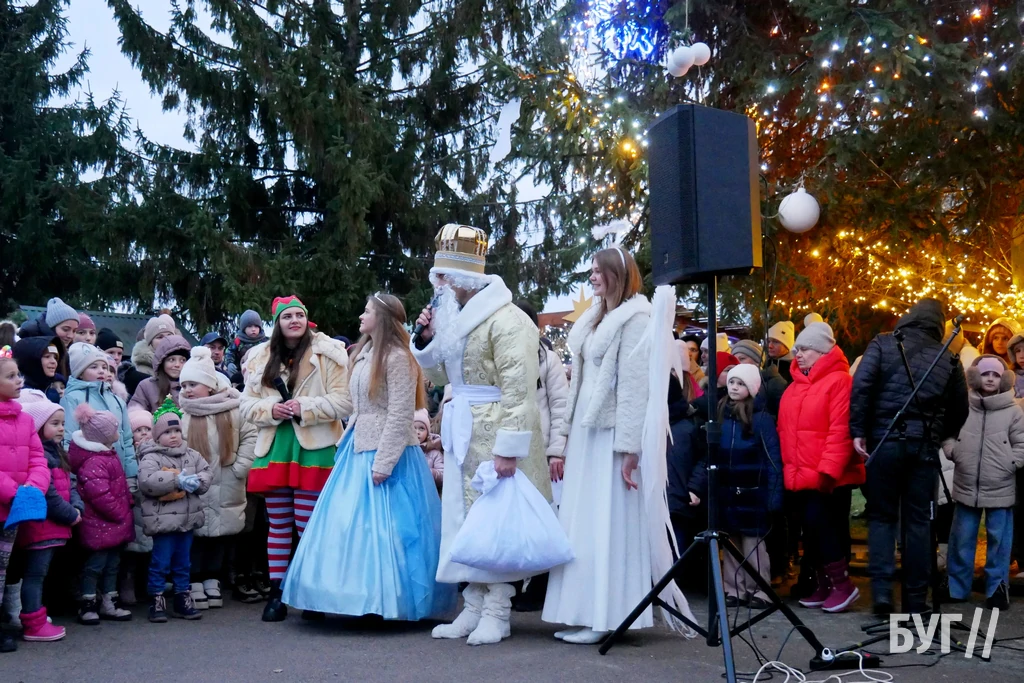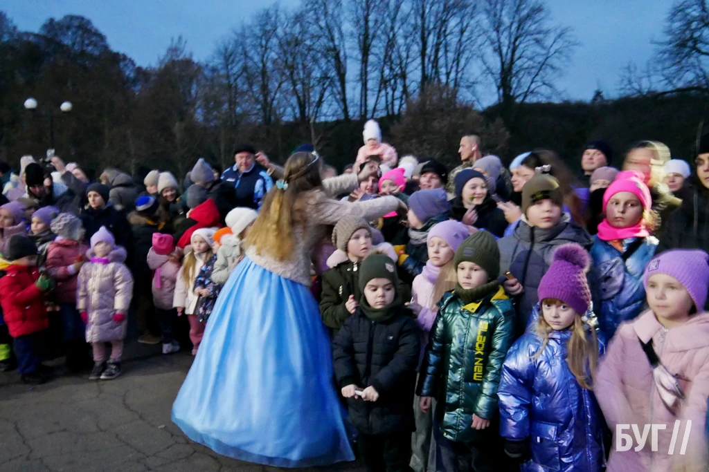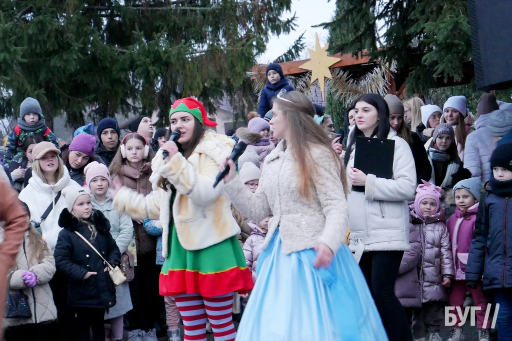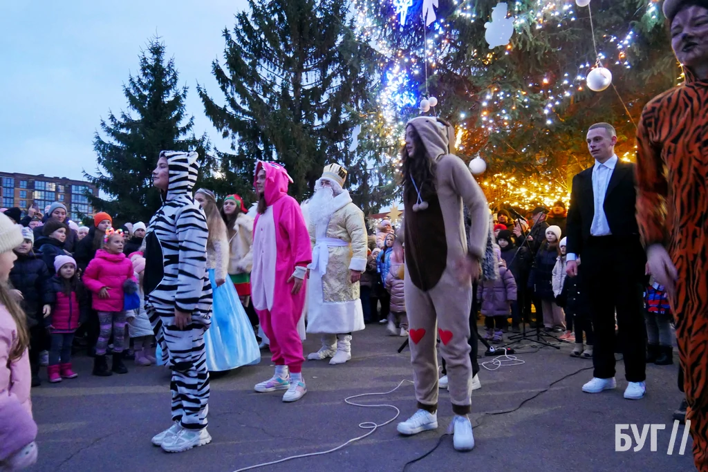 Спочатку малечу із запальними танцями та театралізованою виставою розважали аніматори у костюмах тварин, ангели та принцеса. Після цього, під вигуки “Раз, два, три! ялиночко, гори!” засвітили головне різдвяно-новорічне дерево у місті яскравою ілюмінацією.