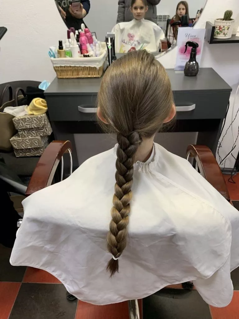 Обрізану косу дівчинка вирішила не залишати собі на згадку. Адже є люди, яким вона принесе більше користі, ніж зберігання у шафі. Волосся довжиною понад 35 см передали львівській благодійній організації “Hair for Share”, яка займається виготовленням натуральних перук для онкохворих.