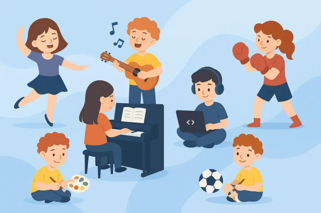 Гра на інструментах і вокальні гуртки приваблюють дітей різного віку. У музичних школах і студіях міст можна навчитися гри на гітарі, фортепіано, скрипці чи духових інструментах.