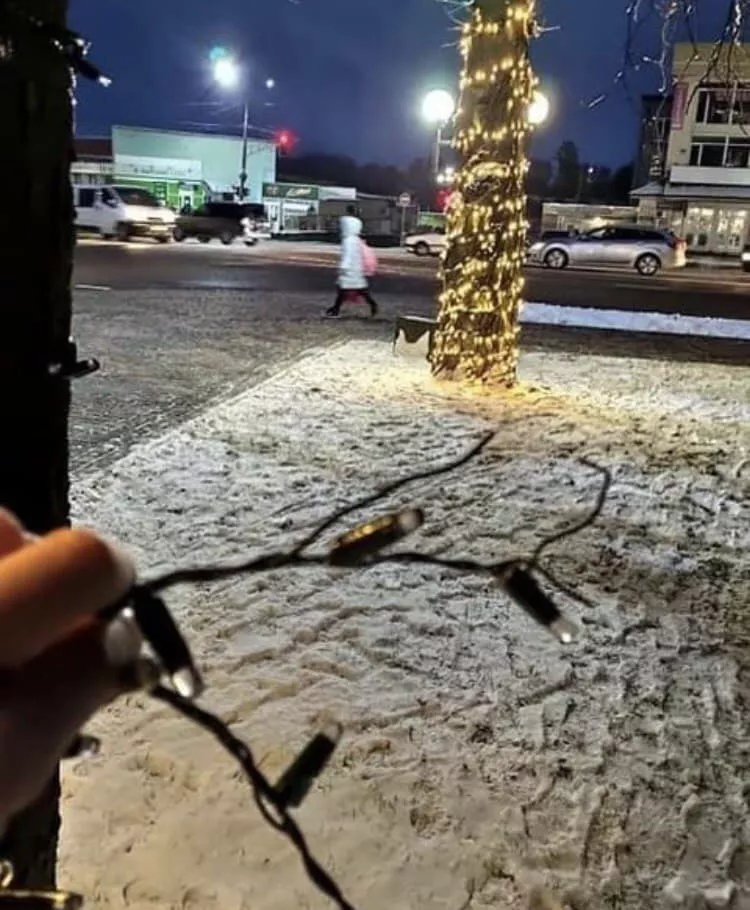 “Для чого псувати речі, які створюють хороший новорічний настрій. Невже комусь так заважає гірлянда котра світить та привертає увагу до похмурих стовбурів?”, – йдеться в пості.