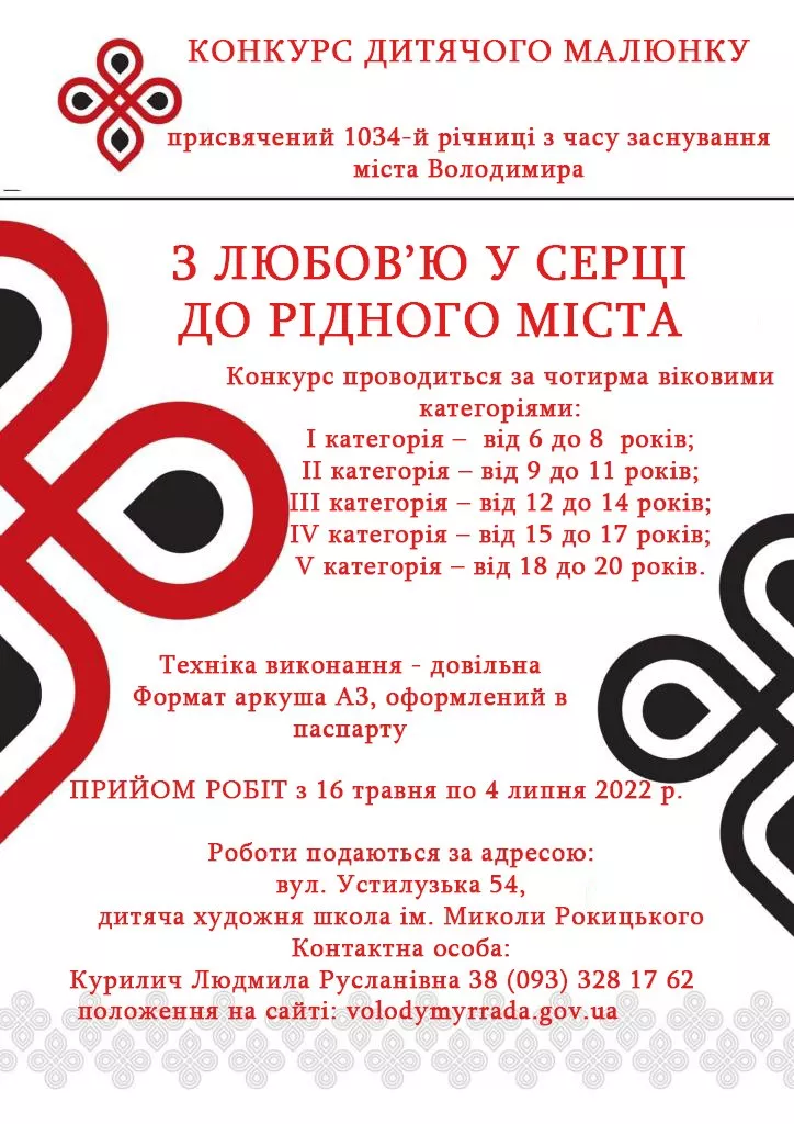 З метою привернення уваги дітей та юнацтва до багатовікової історії Володимира, культурних надбань минулого, як джерела національних духовних основ сьогодення, виявлення і підтримка обдарованих особистостей у громаді розпочинається конкурс «З любов’ю у серці до рідного міста».