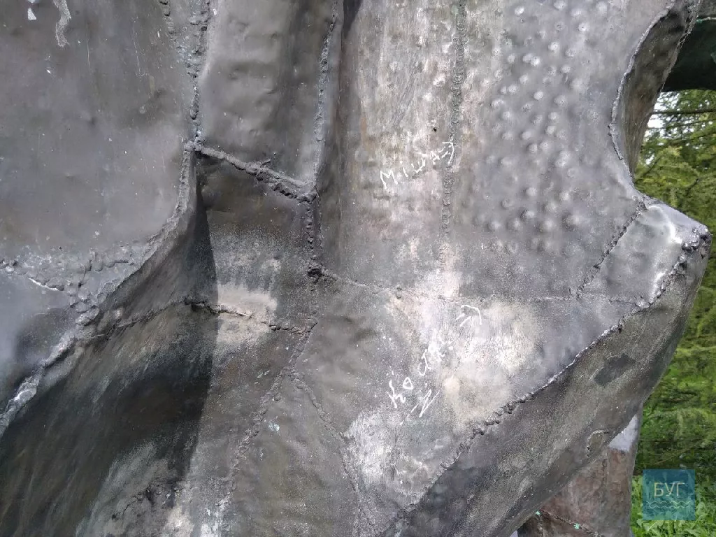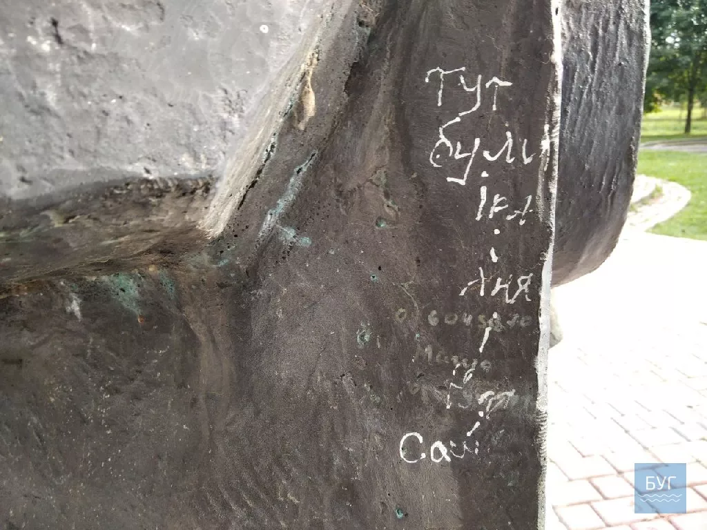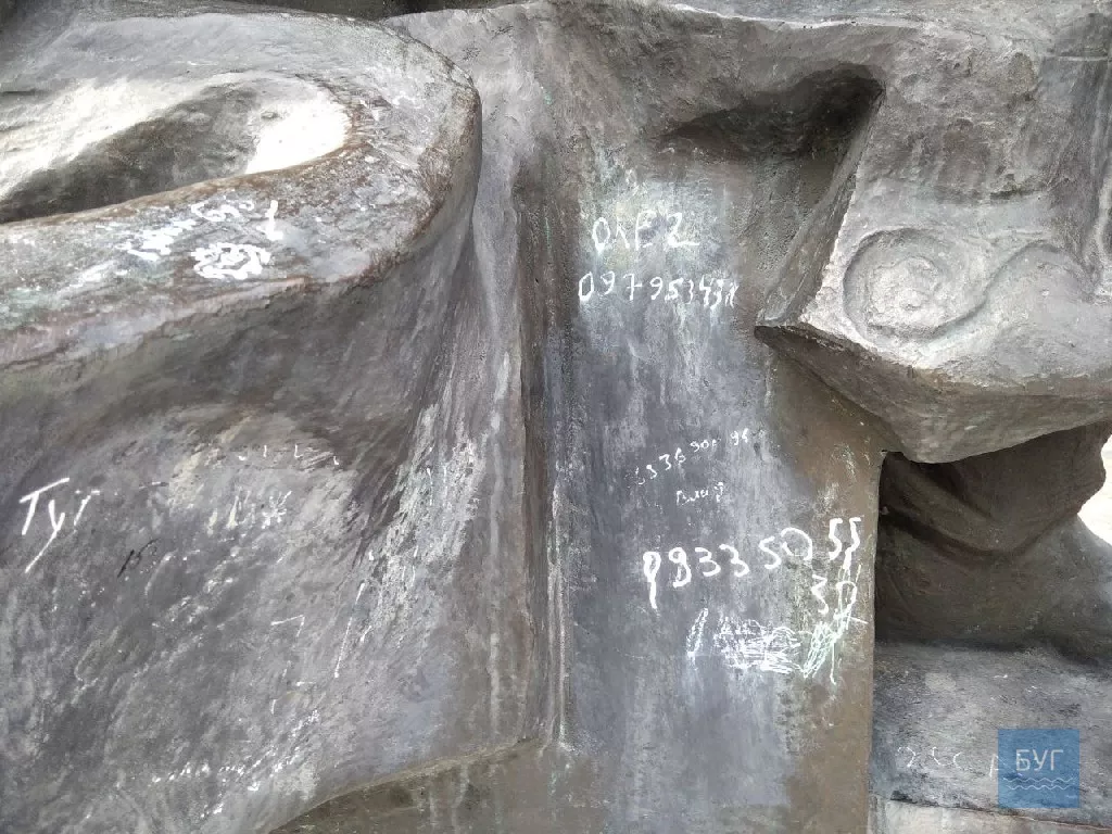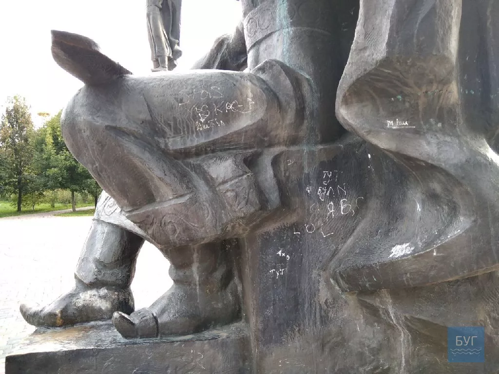 На фігурах – написи коректорами та балончиком різного, навіть подекуди непристойного змісту, номери телефонів, замітки, що тут “хтось був”, “увіковічнені” на архітектурних пам’ятках й імена авторів.