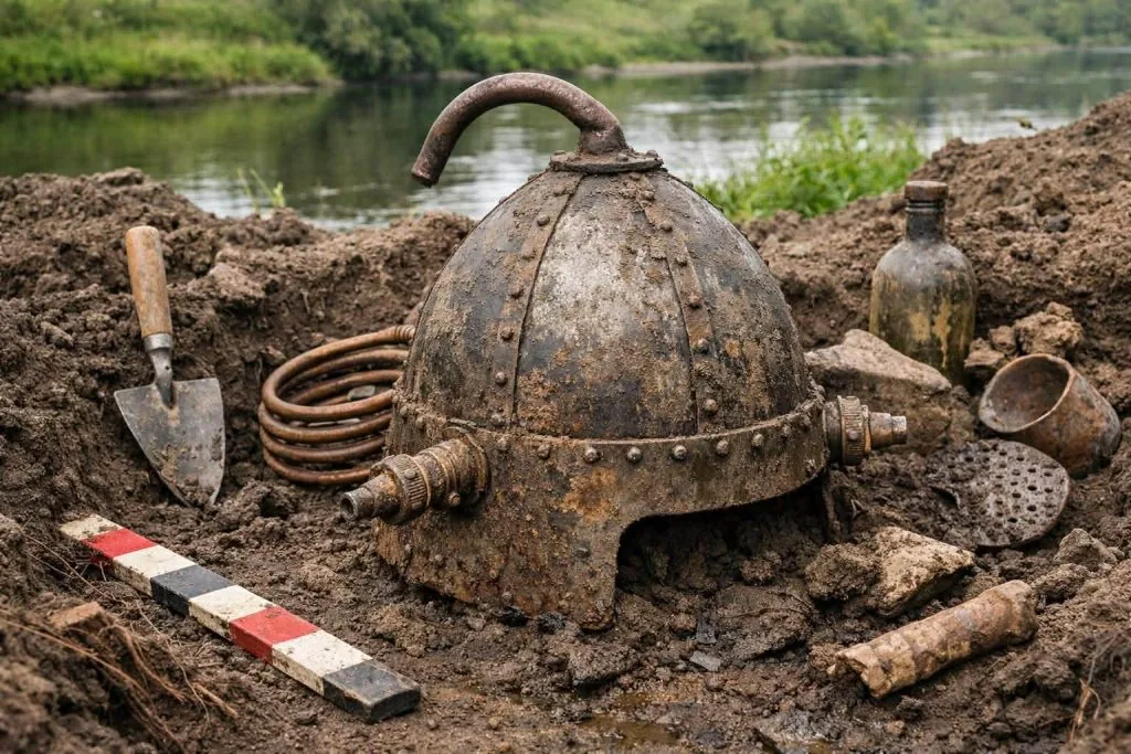 У річці Луга біля села Зимнівської громади виявили унікальний артефакт: шолом виявився фрагментом самогонної установки